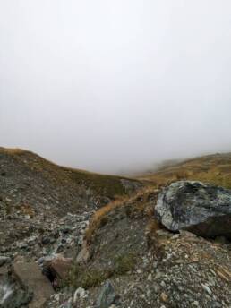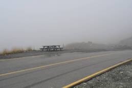 Die kurvenreiche Passstraße durch die Karpaten ist eine der Schönsten und besonders bei Motorradfahrern beliebt. Der Scheitelpunkt liegt bei ca. 2132 Metern und schenkt einen großartigen Blick über die Weite Rumäniens jenseits des Bergmassivs. Davon hatten wir diesmal leider nichts, denn je weiter wir uns hoch kurvten, umso dichter wurden die Wolken und jenseits der Baumgrenze lag die Sicht bei kaum mehr 20 Metern.