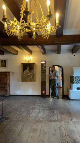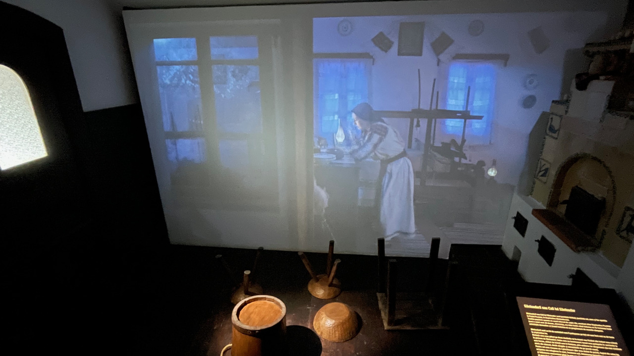 Timetunnel – mit Hilfe von digitalen Animationen über Bildschirme und Soundeffekte, gesteuert durch Bewegungssensoren wird hier die Geschichte des Landes und der Herrschaft sehr anschaulich und gefühlt für einen ganz speziell erzählt.