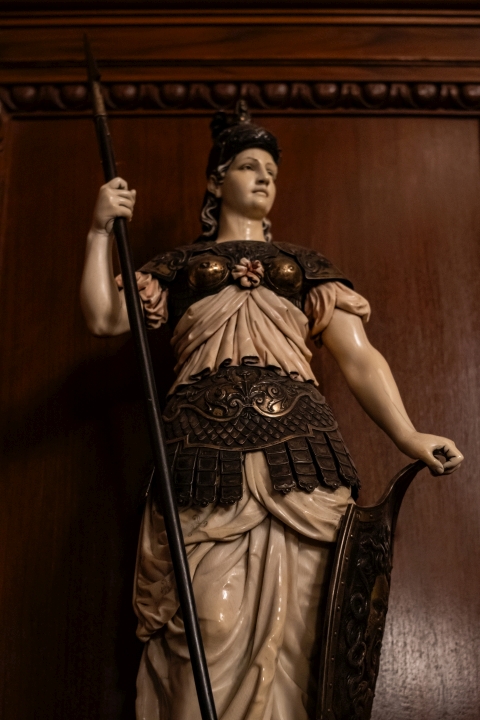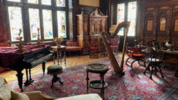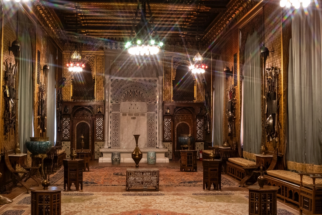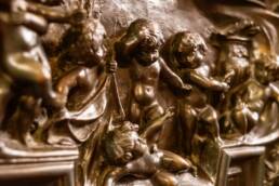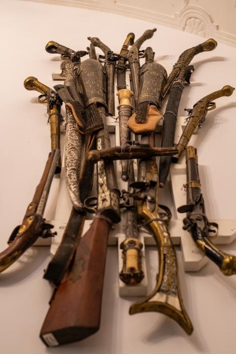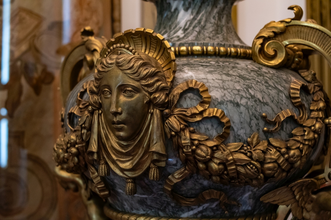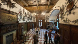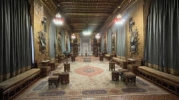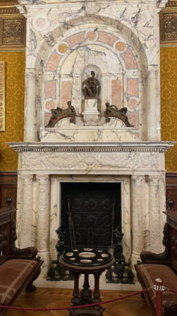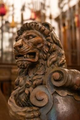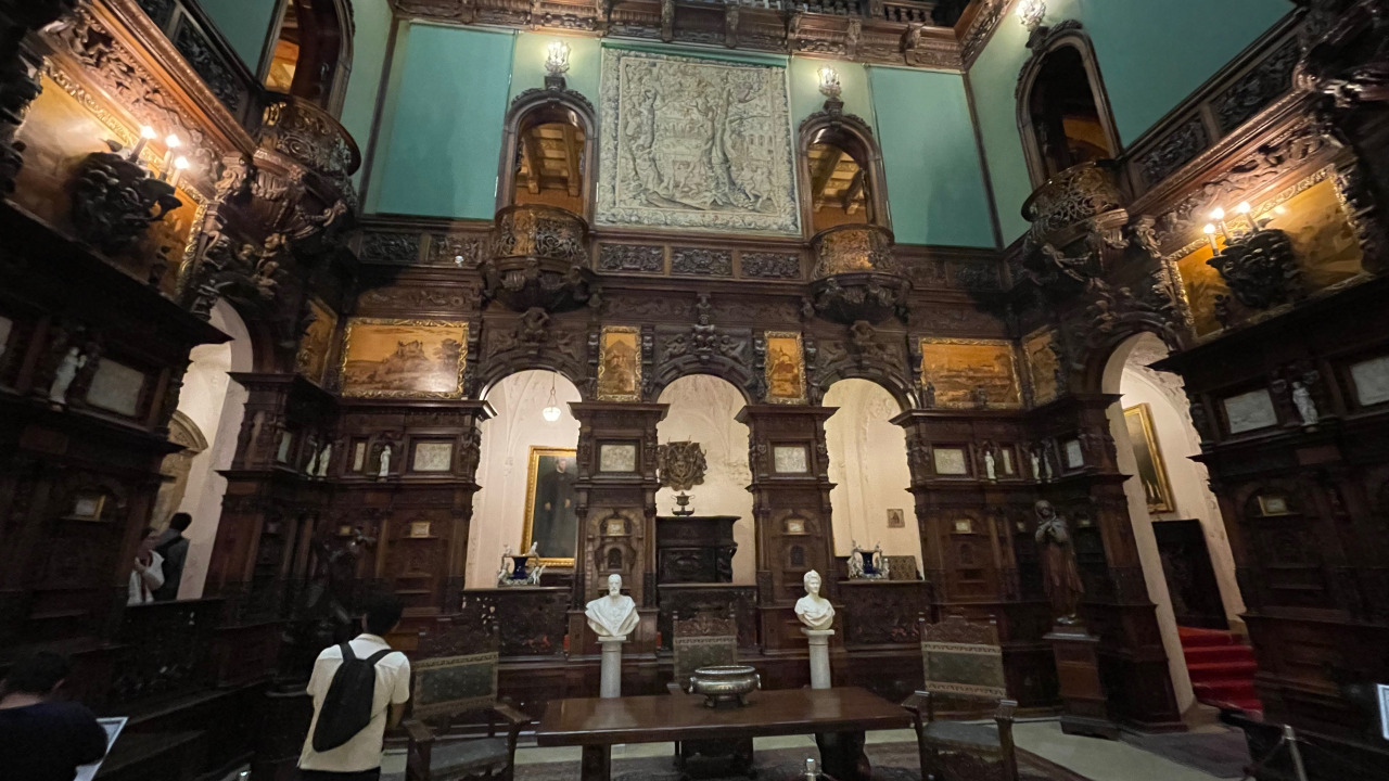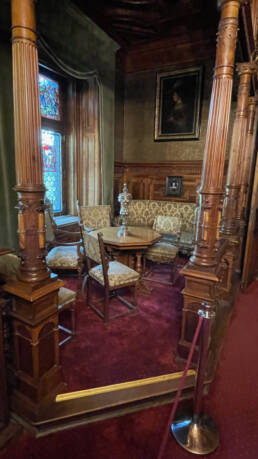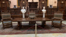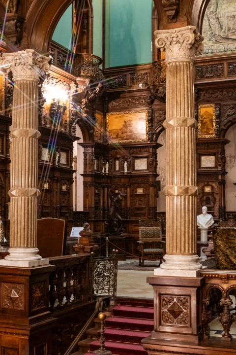 Prunk ist Trumpf, was die Fassaden mit vielen Details versprechen, setzt sich im Innern uneingeschränkt fort. Dunkles, reich verziertes und geschnitztes Holz an den Wänden und sogar Decken, dominiert die Räume. Durch entsprechend ausladende Kronleuchter und Kerzenhalter funkelt es aber überall.