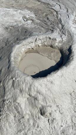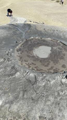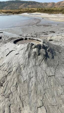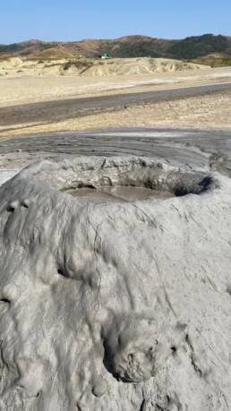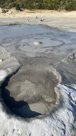 Wir sind natürlich auch zu Pâclele Mari gefahren, haben dort Mittagspause gemacht, um dann die großen Vulkan zu erkunden. Dies Gelände ist etwas kleiner und nicht so weitläufig, die Vulkane und Krater dafür größer. Auch hier wird eine Geschichte rund um einen Drachen erzählt, um das Verhalten der Besucher zu sensibilisieren, keinen Müll zu hinterlassen und auf den Wegen zu bleiben, zur eigenen Sicherheit nicht zu dicht an die Schlammlöcher zu gehen.