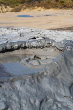 Von Ploiești aus sind wir Richtung Berca zu einem weiteren Naturschauspiel gefahren; den Schlammvulkanen. Es ging mäßiger Wind vor strahlendblauem Himmel bei ca. 30° C. Es gibt zwei Gebiete mit Schlammvulkanen die ca. eine halbe Stunde voneinander entfernt liegen: