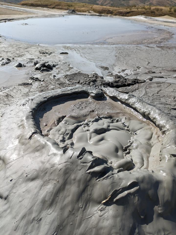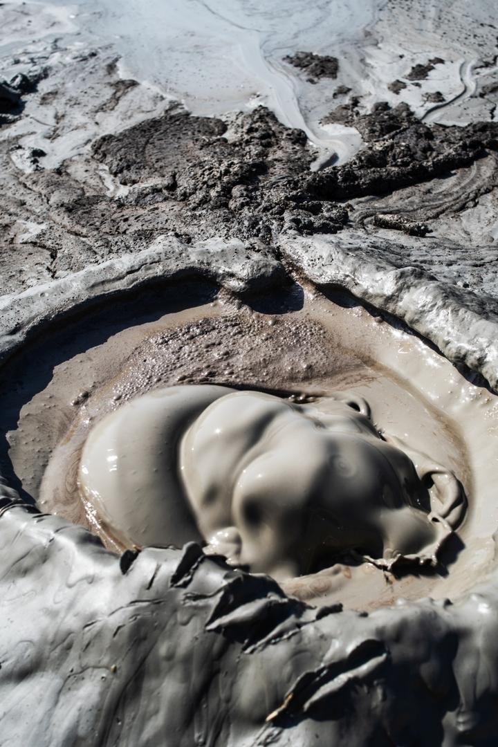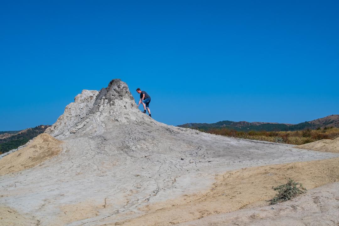 Wir sind natürlich auch zu Pâclele Mari gefahren, haben dort Mittagspause gemacht, um dann die großen Vulkan zu erkunden. Dies Gelände ist etwas kleiner und nicht so weitläufig, die Vulkane und Krater dafür größer. Auch hier wird eine Geschichte rund um einen Drachen erzählt, um das Verhalten der Besucher zu sensibilisieren, keinen Müll zu hinterlassen und auf den Wegen zu bleiben, zur eigenen Sicherheit nicht zu dicht an die Schlammlöcher zu gehen.