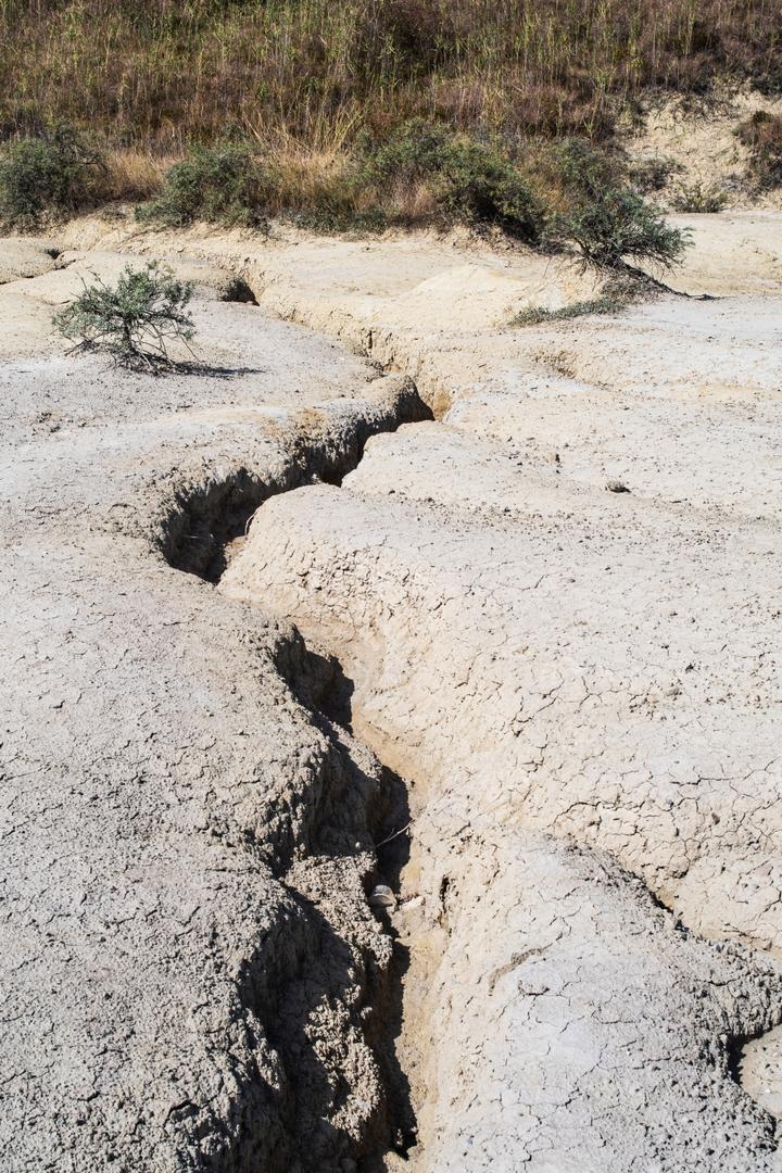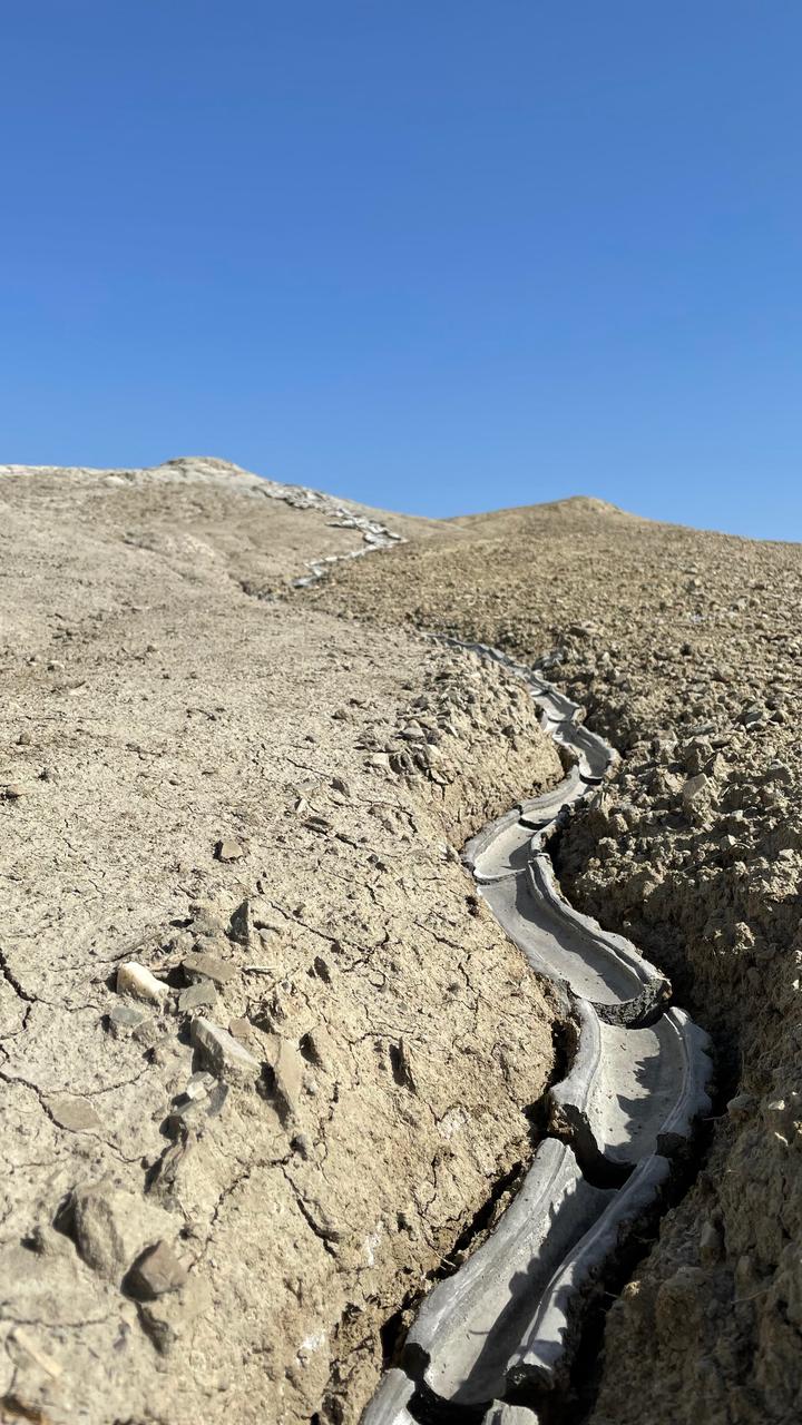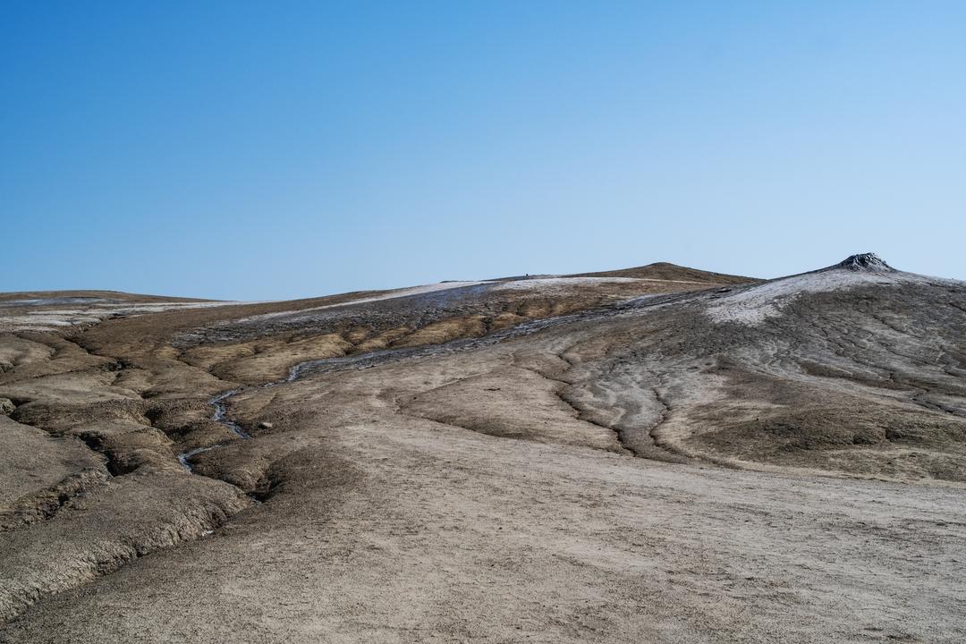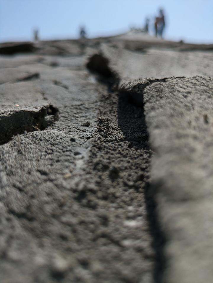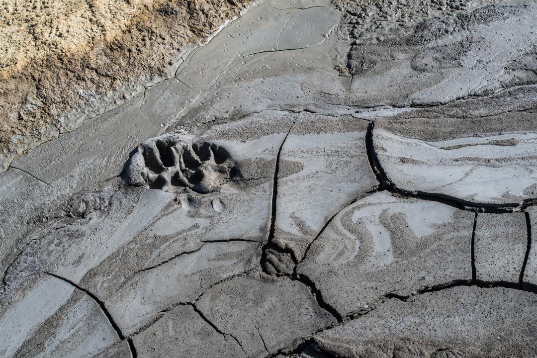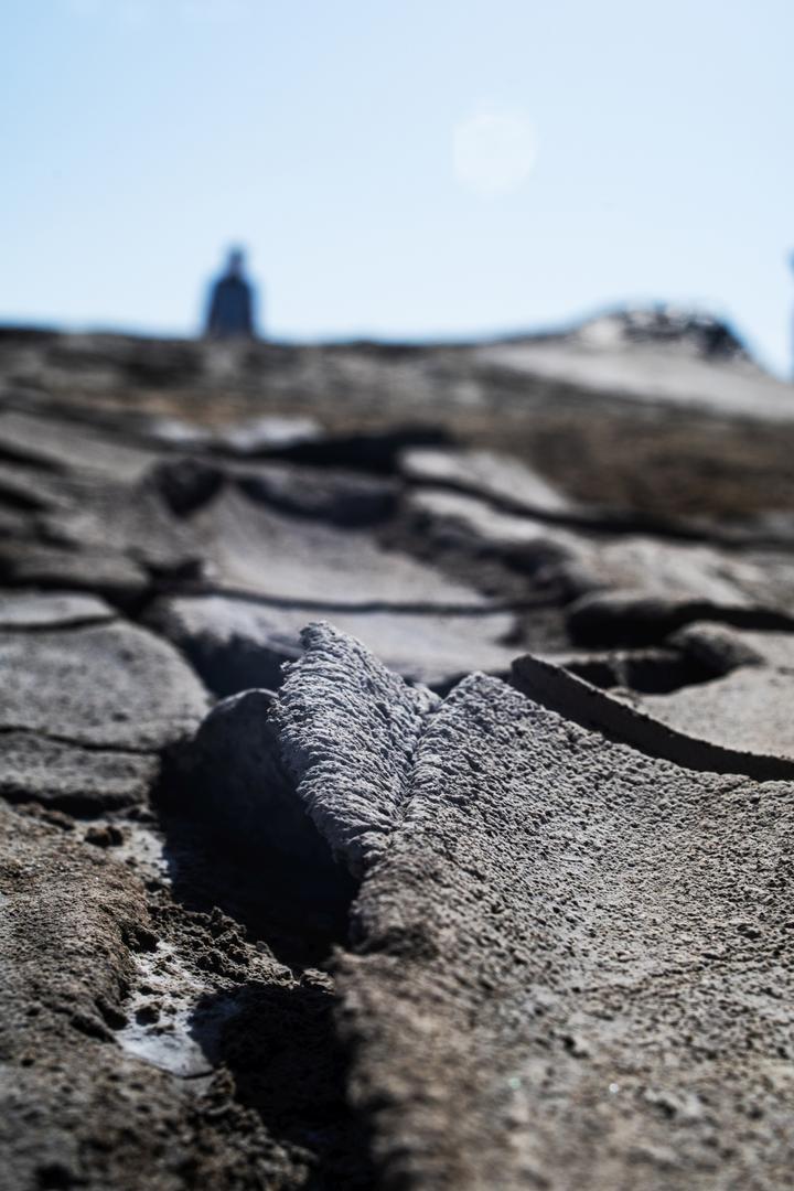 Am eigentlichen Gelände angekommen, bezahlt man den Eintritt und kann sich dann überall frei bewegen. Man bekommt direkt den Eindruck einer Mondlandschaft, durch die Krater und schlammigen Löcher, in denen es mal mehr mal weniger stark blubbert und brodelt. Zum Teil sind die Krater verbunden durch ausgetrocknete Furchen. Dadurch das wir einen heißen Tag erwischt hatten und es auch schon länger nicht geregnet hatte, war es recht trocken und man konnte die Löcher gut sehen. Spuren im zumeist ausgetrocknetem Schlamm erzählten aber auch eine andere Geschichte. Wenn hier alles nass ist, wird es eine rutschige Angelegenheit und sicher auch nicht mehr so einfach die Löcher zu erkennen. Ein Fehltritt jedoch kann schnell gefährlich werden. Der Schlamm der Vulkane kommt teilweise aus bis zu 3 km Tiefe.