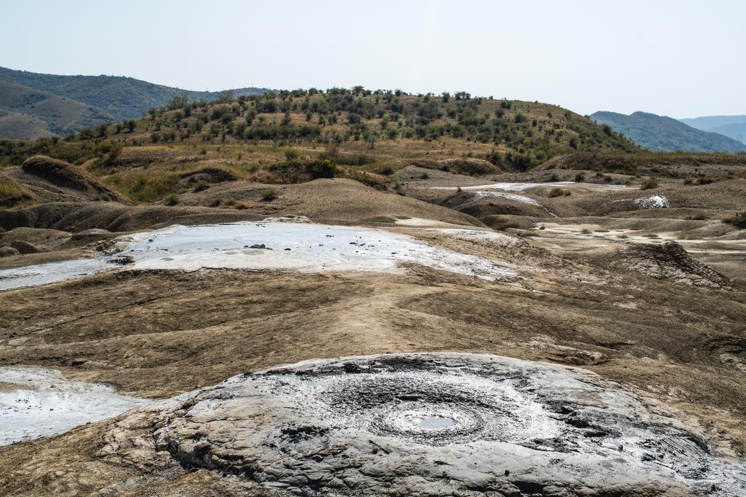 Von Ploiești aus sind wir Richtung Berca zu einem weiteren Naturschauspiel gefahren; den Schlammvulkanen. Es ging mäßiger Wind vor strahlendblauem Himmel bei ca. 30° C. Es gibt zwei Gebiete mit Schlammvulkanen die ca. eine halbe Stunde voneinander entfernt liegen: