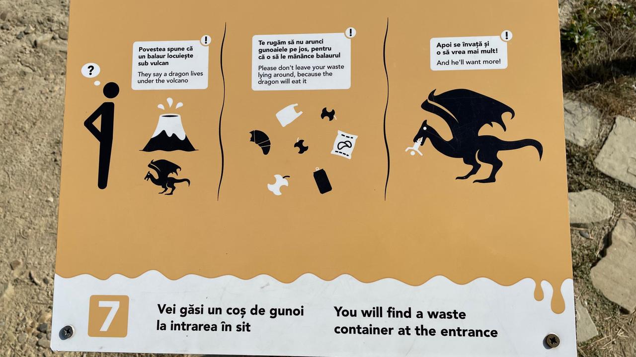 Jedes Areal ist für wenige Euro zu besichtigen. Zu den Pâclele Mici führt vom Parkplatz aus ein Weg, wo in regelmäßigen Abständen Schilder stehen, die eine schöne mystische Geschichte zur Entstehung der Vulkane erzählen. Demnach lebt unter der Erde ein siebenköpfiger Drache. Leider bekommen wir die Geschichte im nachhinein nicht mehr zusammen, fanden es aber sehr schön gemacht.