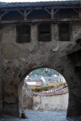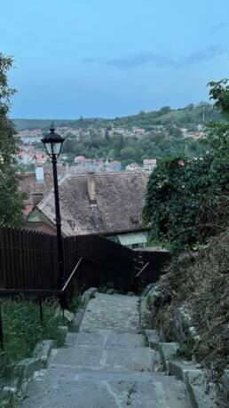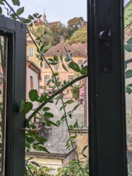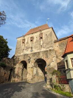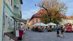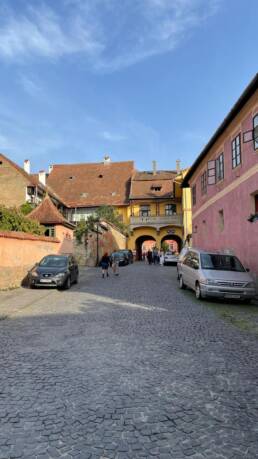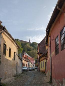 Der letzte Ort unserer Reise. Da wird man schon etwas traurig – so eindrucksvoll wie die vergangenen Tage waren. Unsere Unterkunft lag in der Altstadt unterhalb der Bergkirche. Diesen Bereich darf man als Tourist nur kurz mit dem Auto befahren. Also schnell die Koffer ausgeladen, das Auto unterhalb der Zitadelle geparkt und zu Fuß zurück. Das einzigartig historische Zentrum wurde 1999 zum UNESCOWeltkulturerbe erklärt. Zu Recht. Dieser Teil der Stadt ist wunderschön, mit kleinen Gassen und den typisch farbigen Fassaden. Auf und an dem Berg gelegen, ist alles sehr verwinkelt und hat einen liebenswerten Charme. Wir hatten Zeit und sind durch die sogenannte Unterstadt gelaufen. Ein hölzerner überdachter Treppenaufgang, die sogenannte Schülertreppe mit rund 100 Stufen, führt in die Oberstadt um beide Teile zu verbinden und den damaligen deutschen Schülern Kindern den Weg zu ihrer Schule zu erleichtern.