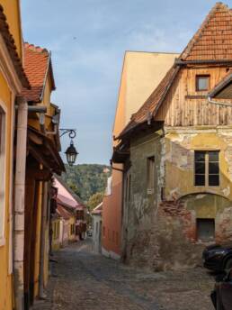Der letzte Ort unserer Reise. Da wird man schon etwas traurig – so eindrucksvoll wie die vergangenen Tage waren. Unsere Unterkunft lag in der Altstadt unterhalb der Bergkirche. Diesen Bereich darf man als Tourist nur kurz mit dem Auto befahren. Also schnell die Koffer ausgeladen, das Auto unterhalb der Zitadelle geparkt und zu Fuß zurück. Das einzigartig historische Zentrum wurde 1999 zum UNESCO–Weltkulturerbe erklärt. Zu Recht. Dieser Teil der Stadt ist wunderschön, mit kleinen Gassen und den typisch farbigen Fassaden. Auf und an dem Berg gelegen, ist alles sehr verwinkelt und hat einen liebenswerten Charme. Wir hatten Zeit und sind durch die sogenannte Unterstadt gelaufen. Ein hölzerner überdachter Treppenaufgang, die sogenannte Schülertreppe mit rund 100 Stufen, führt in die Oberstadt um beide Teile zu verbinden und den damaligen deutschen Schülern Kindern den Weg zu ihrer Schule zu erleichtern.