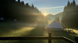 Was für ein Tag. Aber fangen wir vorne an! Aufgewacht sind wir mit der Morgendämmerung und traumhafter Ruhe in unserem Tipi-Zelt. Wer auf diesem Zeltplatz nicht eins mit der Natur wird… der macht was falsch 😀 Auf einer großen Wiese stehen mehrere weiße Zelte auf Holzpodesten. Immer mit genug Abstand zum Nächsten, so das man auch nachts nicht gestört wird. Es gibt eine „Bar“, eine Küche samt Grillplatz und ein paar Stellen für Lagerfeuer-Romantik. Am liebsten wären wir noch länger geblieben, doch der Tagesplan sah zwar die Strecke vor, doch welche Zeit wir dafür benötigen würden, das werden wir erst später erfahren. Wir wussten nicht wirklich was uns erwarten würde.