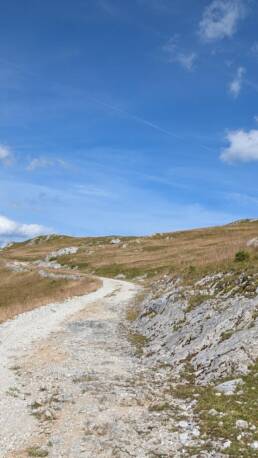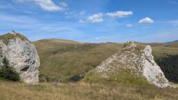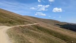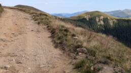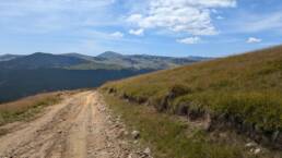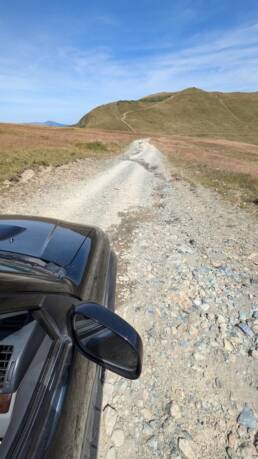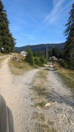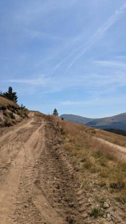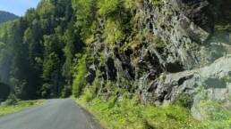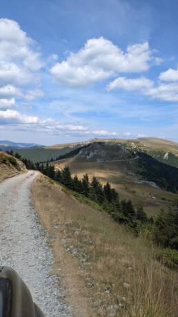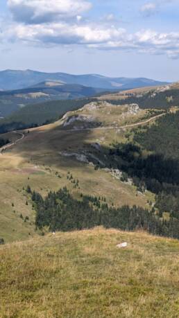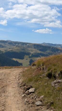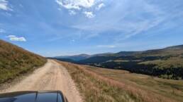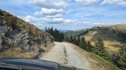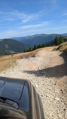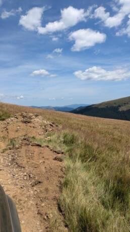 Erstmal führte uns die Navi durch Petroșani zum Beginn der Transalpina „DN67C“. Nachdem wir dort eingebogen sind, ging es nach ca. 10 km auf die sogenannte „Transalpina Strategica“ – der Name sollte noch Programm werden – ohne hohes strategisches Fahrgeschick kommt man hier mächtig ins straucheln. Ich (Regine) überlasse das komplett Marco, damit wir am Ende nicht irgendwo Kopfüber 😲 runterpurzeln. Dafür darf ich die Fotodokumentation übernehmen – an ein paar Stellen war ich allerdings mehr mit Festhalten beschäftigt, um noch das Handy zücken zu können. Aber: an den gruseligsten Passagen war der Ausblick jedesmal phänomenal. Wie gemein. Zum Glück finden sich auch so auf dieser schmalen Schotterpiste genug Spots für Bilder. Der Weg mit zumeist Felsen, viel Staub, kleinem und mittelgroßen Geröll geht an sich mehr oder weniger an den Hängen der Karpaten entlang. So direkt, dass es rauf und runter geht, hinter jeder Kurve neue Panoramen warten und man sich stetig höher schraubt um kurz drauf einige Meter bergab zu fahren. Was aber gar nichts heißt, sogar nur noch 7 Kilometer vor dem Ende waren wir immer noch auf über 1100 Metern Höhe. Die maximale Höhe tief im Gebirge hatten wir bei genau 1991 Metern. Krass. Und irre. Und soooooo schön.