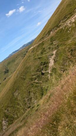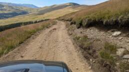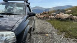 Die Strecke änderte sich weiter. Der Boden war felsig und es taten sich regelrechte Abgründe auf. Wir sind auf Passagen zugefahren bei denen wir uns überhaupt nicht sicher waren, wie das zu fahren sein soll. Es muss aber gehen, schließlich sind uns schon andere Fahrzeug entgegen gekommen und vor uns war noch ein Wrangler unterwegs. Es ist wieder schwierig in Worte zu fassen, aber stellt euch vor, rechts vom Wagen gehts wieder ziemlich steil nach unten, links ist eine Wand und der Fahrweg neigt sich stark Richtung Abhang. Wir sind also in Schräglage gefahren, dazu kamen felsige Unebenheiten, die das Fahrzeug in dieser Lage zum schwanken brachte. Nichts für schwache Nerven. Und zu allem Überfluss kam uns jetzt auch noch eine Schafherde samt Hüter entgegen. Anhand von seiner Mimik war klar: So cool findet der das wohl gerade nicht, dass wir hier rumeiern. Wir haben den Wagen aber schon weit vorher gestoppt und ausgestellt, damit die Schafe (die recht scheu sind) an uns vorbeiziehen.