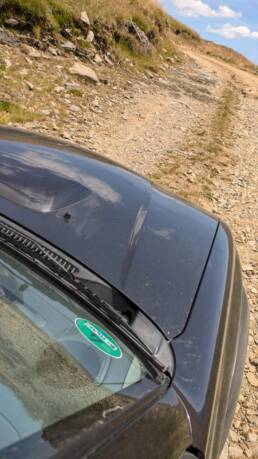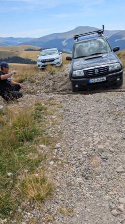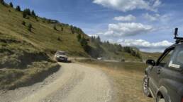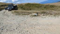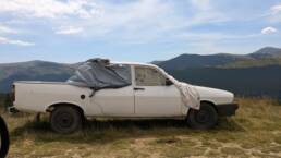 Der wilde Ritt ging weiter und weiter immer tiefer in die Karpaten. Wir ließen das schwierige Terrain hinter uns und sahen von weitem eine Kolonne mit mehreren Fahrzeugen. Da ein Ausweichen auf der Strategica nur an gewissen Stellen möglich ist, haben wir gestoppt und gewartet. Es handelte sich um auffällige Fahrzeuge, ähnlich wie beim Carbage Run. Sollte das etwa wieder so eine Art Ralley sein? Wie bei jedem Offroader in freie Natur grüßt man sich ja beim Vorbeifahren. Auch hier! Doch der erste Wagen stoppte, wir schüttelten Hände und wunderten uns darüber, dass die jungen Insassen in diesem „Schrottauto“ deutsch sprechen. Und das sogar sehr gut. Es stellt sich raus: Es war eine Gruppe von Freunden, die zusammen die Strategica fahren. Wir wunderten uns dann doch über die Autos – nicht alle waren 4×4 und wir wussten ja sehr gut, was die noch erwarten würde. Wir wünschten allen noch eine gute Fahrt und schon gings weiter.