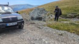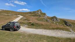 Tja, aber irgendwie ging dieser Weg dann doch in eine ganz falsche Richtung, so dass wir wieder zurückfahren mussten. Nochmal über diese Schikane *ächz* und wieder zurück auf die Strategica. Die Wege waren völlig okay, Offroadfeeling vom Feinsten! Natur pur und einfach unter sich sein. Hier und da natürlich andere Leute, aber sehr überschaubar. Interessant wurde es dann wieder später, als die Strecke plötzlich eine ganz andere Wendung nach. Der Untergrund war vorher meistens eben (halt steil und teils mit Löchern), aber gut zu fahren. Wir fanden uns dann aber plötzlich in einer Situation wieder, wo wir das erste Mal aussteigen mussten um zu beraten, wie wir da am Besten fahren. Wir überlegten die für uns beste Route, Regine ging voraus und gab mir (Marco) mit Handzeichen zu verstehen, in welche Richtung ich lenken müsste. Ihr merkt schon – da ging es um Zentimeter. Aber nicht etwa, weil es so schmal war – der Boden war zerklüftet und eine falsche Lenkbewegung oder eine falsche Route führt zum Aufsetzen und/oder Beschädigung am Fahrzeug. An dieser Stelle kam unser Vitara, der seinen Job übrigens total super macht, an seine Grenzen. Untersetzung und Allrad im ersten Gang waren nicht im Stande, diese Steigung zu meistern. Der Untergrund war zu lose – eine Alternative musste her die recht schnell gefunden war. Nun funktionierte es besser und wir waren stolz, diese Hürde gemeistert zu haben. Allerdings war dies nur ein Anfang eines Abenteuers, was uns wohl noch lange im Gedächtnis bleibt.