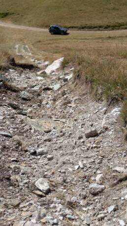 Allerdings: Was wir nicht wussten war, wie lange diese Reise noch gehen sollte. Gab es hier zwar schon das ein oder andere Hindernis, wo uns die Hände nach der Durchfahrt zitterten, so sollte es gegen Ende noch um einiges dicker kommen. Der Tag neigte sich langsam dem Ende entgegen und und um kurz vor 21 Uhr ging es immer noch bergauf. Die Sonne war schon hinter den Bergen verschwunden und langsam wurde es dunkel. Mittlerweile hatte sich der feste Untergrund verändert und ist zu weichem Sand geworden. Dazu kam, dass die Strasse selber als solche kaum zu bezeichnen war – ich würde es als „Mini-Karpaten“ bezeichnen und ich untertreibe nicht wenn ich behaupte, dass man in den Furchen einen Fiat Panda verschwinden lassen könnte.