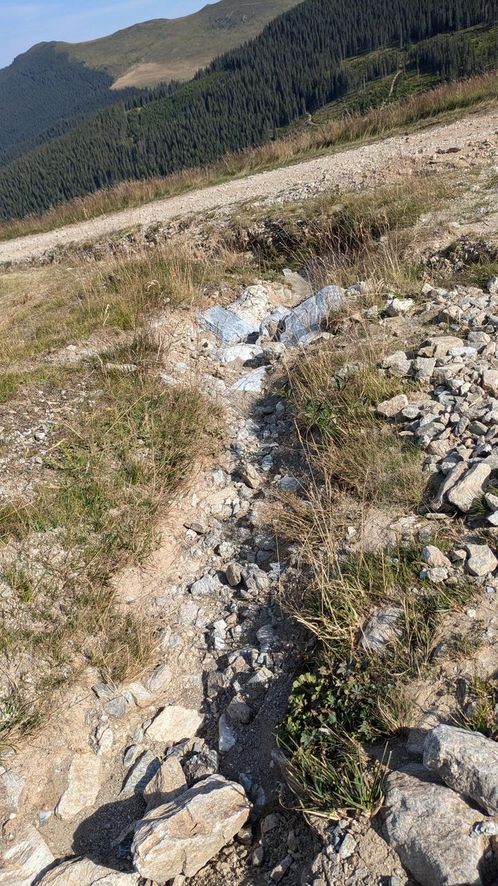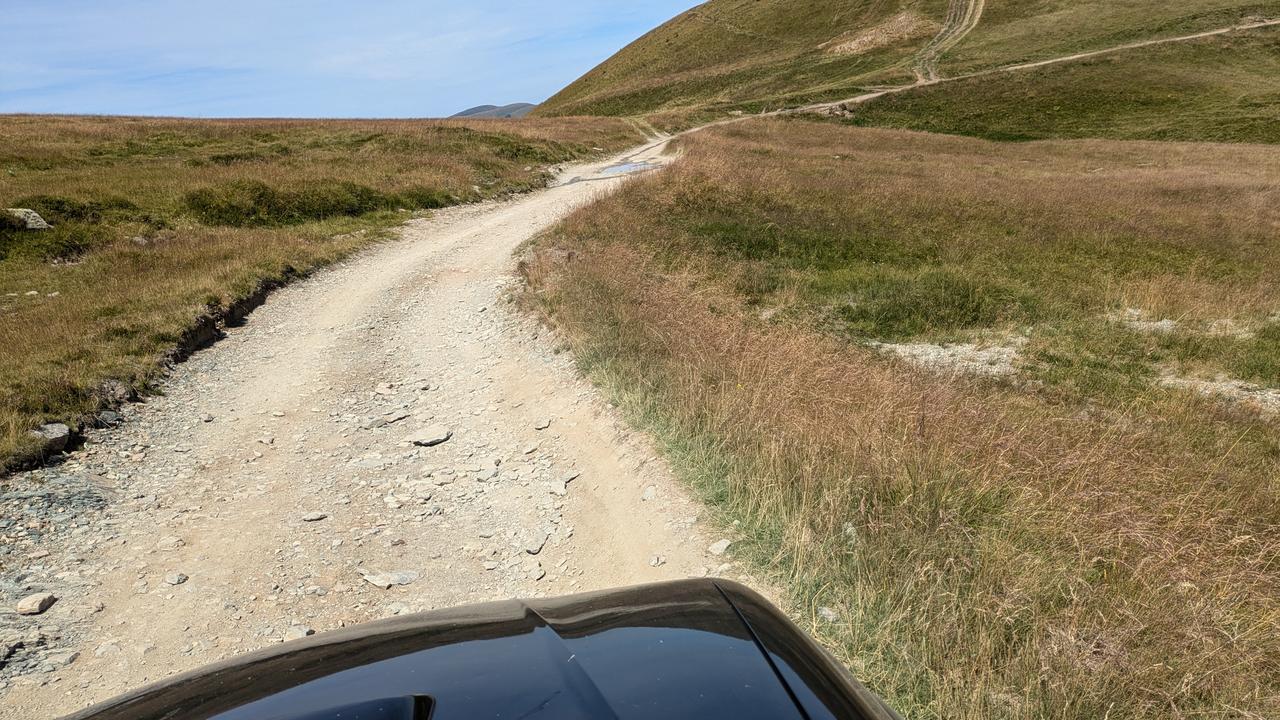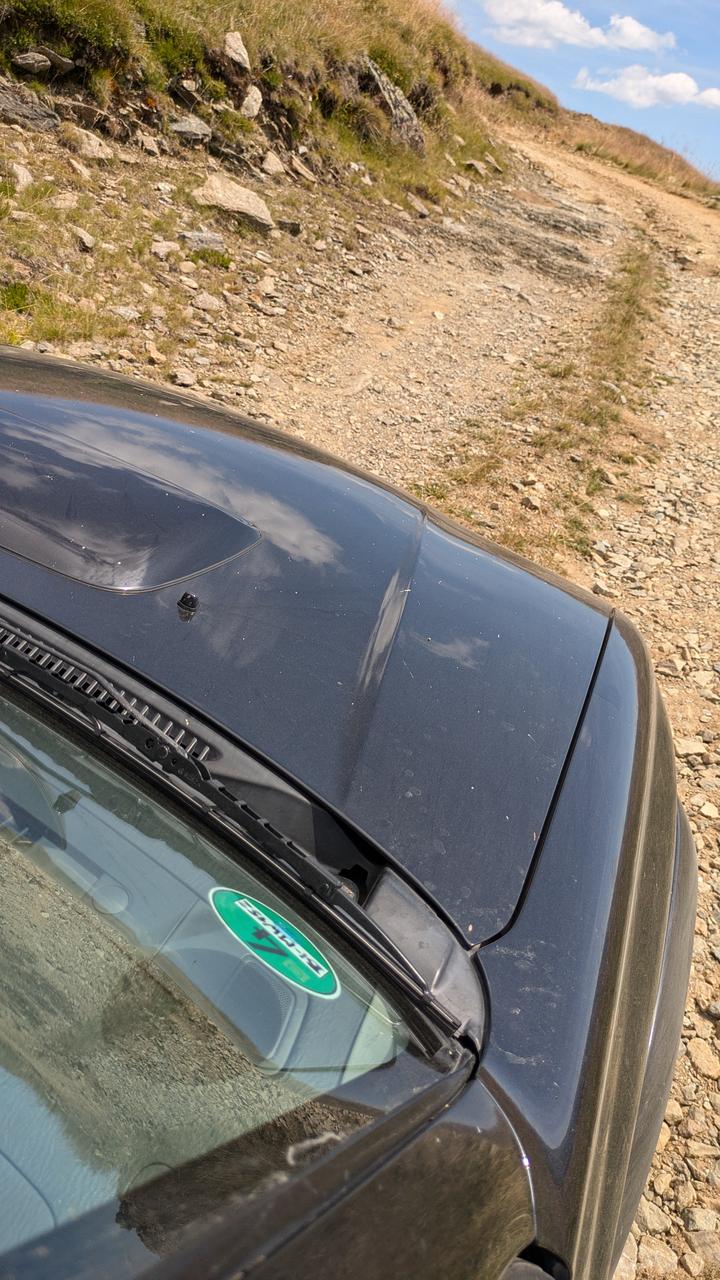Erstmal führte uns die Navi durch Petroșani zum Beginn der Transalpina „DN67C“. Nachdem wir dort eingebogen sind, ging es nach ca. 10 km auf die sogenannte „Transalpina Strategica“ – der Name sollte noch Programm werden – ohne hohes strategisches Fahrgeschick kommt man hier mächtig ins straucheln. Ich (Regine) überlasse das komplett Marco, damit wir am Ende nicht irgendwo Kopfüber 😲 runterpurzeln. Dafür darf ich die Fotodokumentation übernehmen – an ein paar Stellen war ich allerdings mehr mit Festhalten beschäftigt, um noch das Handy zücken zu können. Aber: an den gruseligsten Passagen war der Ausblick jedesmal phänomenal. Wie gemein. Zum Glück finden sich auch so auf dieser schmalen Schotterpiste genug Spots für Bilder. Der Weg mit zumeist Felsen, viel Staub, kleinem und mittelgroßen Geröll geht an sich mehr oder weniger an den Hängen der Karpaten entlang. So direkt, dass es rauf und runter geht, hinter jeder Kurve neue Panoramen warten und man sich stetig höher schraubt um kurz drauf einige Meter bergab zu fahren. Was aber gar nichts heißt, sogar nur noch 7 Kilometer vor dem Ende waren wir immer noch auf über 1100 Metern Höhe. Die maximale Höhe tief im Gebirge hatten wir bei genau 1991 Metern. Krass. Und irre. Und soooooo schön.