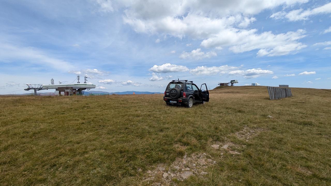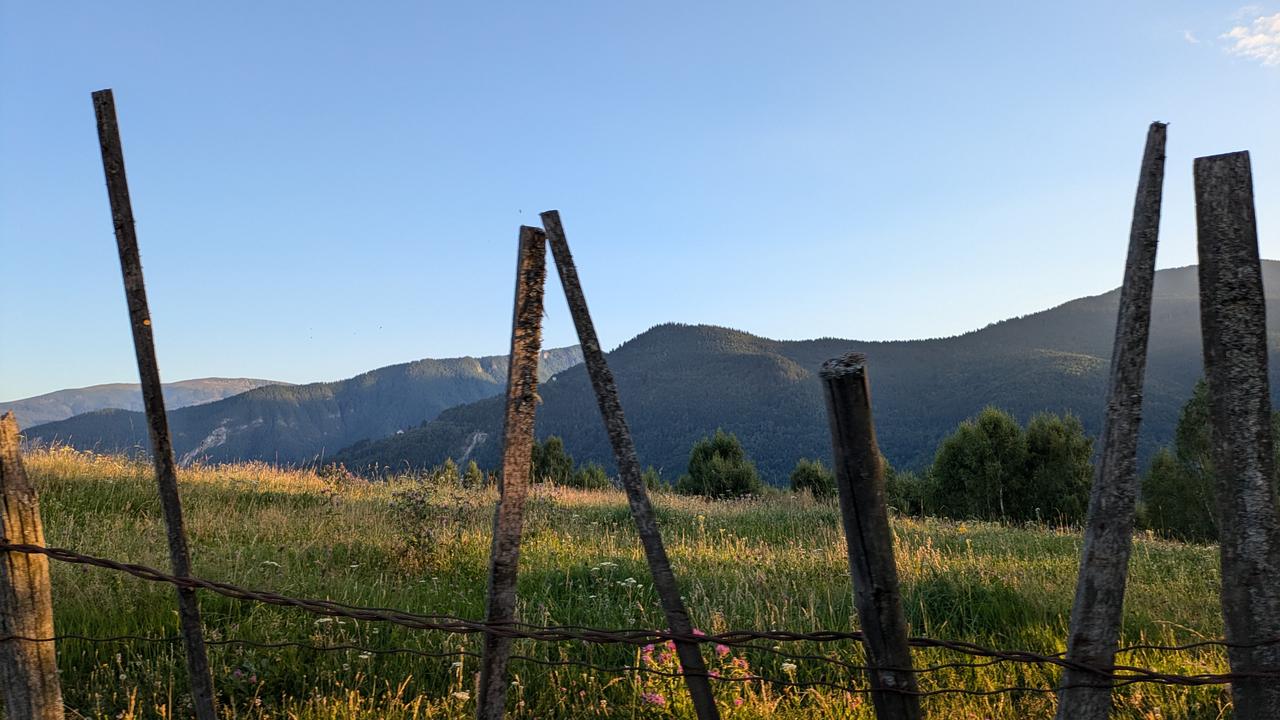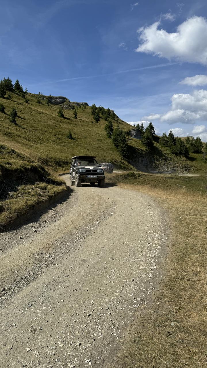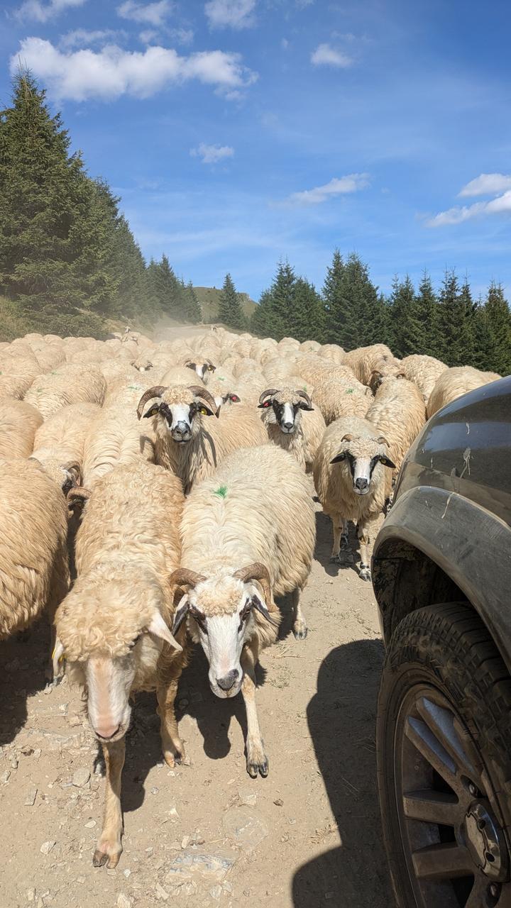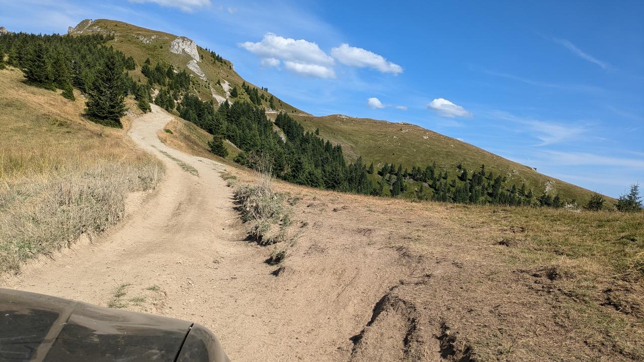 Man hat fast die ganze Zeit über einen irren Weitblick auf die Karpaten mit klar sichtbarer Baumgrenze (bis auf ein paar Ausreißer). Einem Abzweig, der von der „Strategica“ wegführt,  konnten wir nicht widerstehen, hatten wir doch dort oben eine „Bushaltestelle“ erspäht. Ganz zu Beginn ist ein weißer Citroen (Kleinwagen) an uns vorbei gefahren und wen treffen wir auf diesem Abstecher, der mit unseren 4×4 kaum zu bewältigen war? Den weißen Citroen samt Besitzer! Der hatte an einer von Wasser ausgewaschenen Stelle Probleme bekommen und konnte nicht weiter. Er werkelte schon mit Wagenheber rum – was auch immer er damit vorhatte. Jedenfalls hatte er sich damit schlimm am Finger verletzt. Das Blut sickerte schon durch seinen provisorischen Verband. Schnell verschwand er kurz in seinem Auto, parkte es um damit wir mehr Platz haben, riss sich noch einige Textiltücher zurecht und wickelte sie um seine Finger. Trotz Allem hat er sofort einige Hölzer über die Schikane gelegt und meinte mit Handgesten, dass wir durchfahren sollen 😀 Er hob vier Finger und wollte wissen ob wir Allrad haben. „Ja? Dann klappt das schon!“ – lies er uns auf gebrochenem aber verständlichem rumänischem englisch wissen. Ich (Marco) war skeptisch. Die Stelle sah trotz der Hölzer nicht gut aus. Der Rumäne fuchtelte derweil mit seinen blutigen Fingern weiter und meinte wir sollen ein Stück zurück und oben über die Wiese fahren. Geht doch auch mit Allrad. Joah, würde wohl auch gehen. Wieso auch immer Strasse fahren? Aber nee, nu hat er die Hölzer so schön drappiert, also rüber da! Wir haben es versucht und es hat natürlich geklappt. Wir sind dann noch eine Weile mit dem Mann im Gespräch gewesen, er hat uns etwas die Gegend und Natur erklärt. An der Hängen jenseits der Baumgrenze wachsen flache Büsche mit Blauberen, gut für den Magen (aus den Blättern macht man Tee, der ist gut für die Lunge – wusstet ihr das?). Kurz darauf kam noch ein Schäfer mit seinen 250 Schafen, einer Ziege und einem Esel dazu. Einmal im Flow haben auch wir mit den beiden Selfies gemacht. So nette Leute hier 😍😍 Übrigens haben wir etwas später festgestellt, dass wir hier auf fast 2000 Metern ja feinstes Internet haben. Verrückt – aber so konnten wir uns Dank Google Übersetzer mit den beiden unterhalten (daher auch die Info mit den Anzahl der Schafe – selber gezählt haben wir nicht 😅)