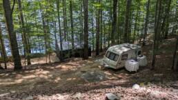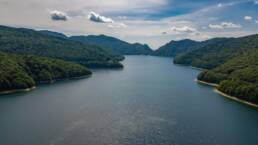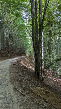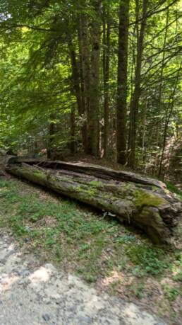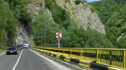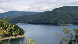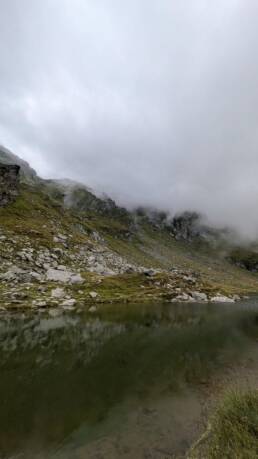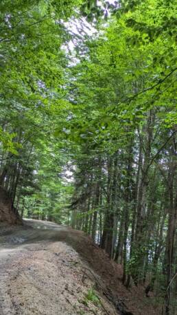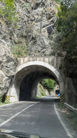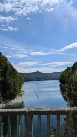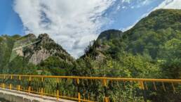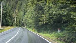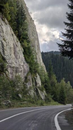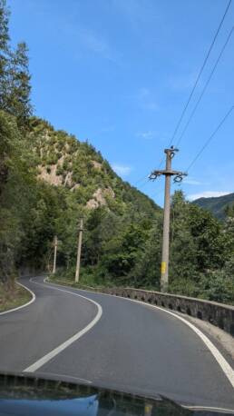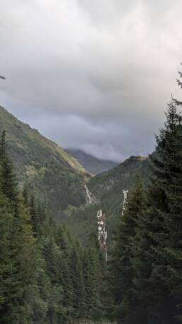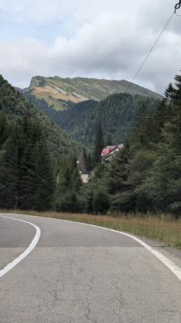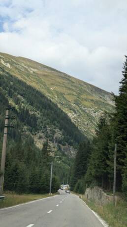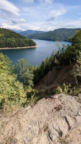 Ich weiss gar nicht, wie ich auf den Trichter gekommen bin, dass wir heute die Transfăgărășan in Asphaltform fahren 🧐 Wir wollten an dem Staudamm nach links statt nach rechts fahren, das wusste ich. Dort ist ein Tunnel und es ist erlaubt durchzufahren. Irgendwie hab ich erwartet, dass das eine asphaltierte Strasse ist. Dem war nicht so 😀 Ein Tag Offroad-Pause muss ja auch wirklich reichen 😉 Aber es war halb so wild, während ich genüsslich auf und ab hüpfend ein paar Kekse geknabbert habe und Marco seinen diversen Apps kontrollierte, schlängelten wir uns an der Kante des wirklich grossen Stausees entlang. (Ist auch relativ, der an der 66A ist deutlich größer 😉 ) Wir waren auf festem Waldboden mit wenig Geröll unterwegs, ein bisschen nach links und rechts geschüttelt – das wars schon. Ab und zu ist uns ein anderes Fahrzeug entgegen gekommen oder hat uns überholt. Alles in allem war der Weg linksseitig sehr schön ruhig. Vom gegenüberliegenden Ufer konnten wir einige Male Motorräder hören. Zum Ende hin gibt es ein paar Campingplätze und kleinere Hotels. Auch wenn die „Straße“ für unseren Offroader kein Problem darstellte, fragen wir uns doch wie normale Fahrzeuge das schaffen sollen – doch es standen dort einige davon. Okay, muss wohl gehen – wir würden das mit unseren Daily-Fahrzeugen nicht machen 🙈