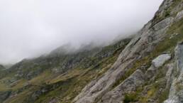 Die Fahrt runter ins Tal über die Serpentinen dauert gar nicht so lange, fast unten angekommen stellen wir fest: a) da ist wieder Sonne und b) das wäre die ideale Strecke für die 360° Kamera gewesen. Nochmal: hmpf. Und nu? Die Unterkunft hatten wir gebucht auf ca. 21 Uhr Ankunft. Nochmal rauf und runter? Wo drehen wir denn bei den ganzen Menschenmassen? Ach egal, das klappt schon. Gesagt getan, Insta wieder aufs Dach und nochmal raufgekurvt. Oben schon wieder nur Wolken, kalt und noch doller windig. Trotzdem hat Marco den Kopter steigen lassen. Ich hab aufgepasst, das wir ihn nicht verlieren. Am Ende wurden wir belohnt, ein Wolkenloch zeigte sich, im Tal schien die Sonne und zusammen mit den Wolkenschwaden die über den Kamm zogen hatten wir einen ganz besonderen Blick. Dann aber schnell ins Auto, Sitzheizung an (jaaa, komfortabel ist unser kleiner Alleskönner auch :-D) und auf zur Unterkunft. Erschöpft von den letzten Tagen und den vielen vielen Eindrücken, sagen wir für heute gute Nacht.