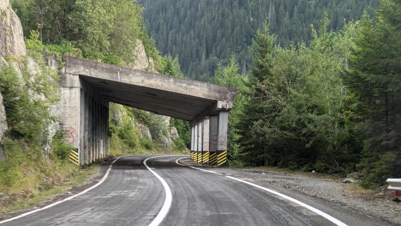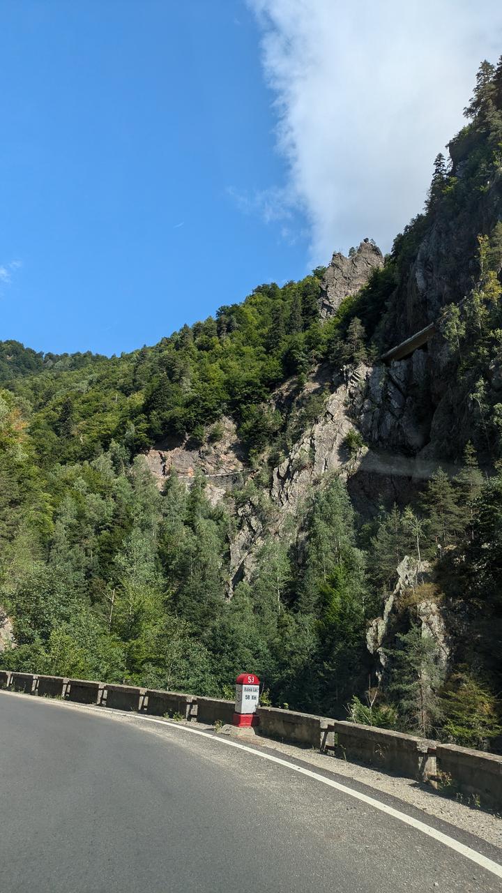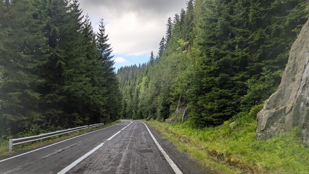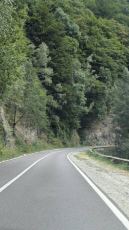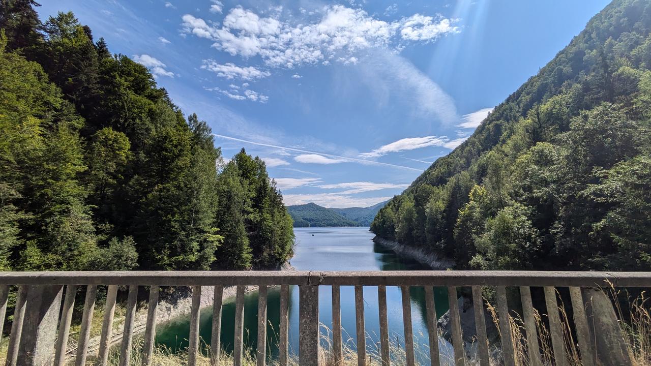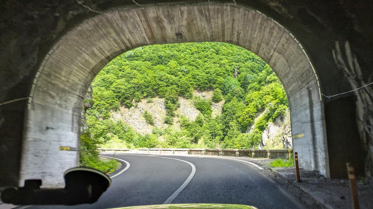 Ich weiss gar nicht, wie ich auf den Trichter gekommen bin, dass wir heute die Transfăgărășan in Asphaltform fahren 🧐 Wir wollten an dem Staudamm nach links statt nach rechts fahren, das wusste ich. Dort ist ein Tunnel und es ist erlaubt durchzufahren. Irgendwie hab ich erwartet, dass das eine asphaltierte Strasse ist. Dem war nicht so 😀 Ein Tag Offroad-Pause muss ja auch wirklich reichen 😉 Aber es war halb so wild, während ich genüsslich auf und ab hüpfend ein paar Kekse geknabbert habe und Marco seinen diversen Apps kontrollierte, schlängelten wir uns an der Kante des wirklich grossen Stausees entlang. (Ist auch relativ, der an der 66A ist deutlich größer 😉 ) Wir waren auf festem Waldboden mit wenig Geröll unterwegs, ein bisschen nach links und rechts geschüttelt – das wars schon. Ab und zu ist uns ein anderes Fahrzeug entgegen gekommen oder hat uns überholt. Alles in allem war der Weg linksseitig sehr schön ruhig. Vom gegenüberliegenden Ufer konnten wir einige Male Motorräder hören. Zum Ende hin gibt es ein paar Campingplätze und kleinere Hotels. Auch wenn die „Straße“ für unseren Offroader kein Problem darstellte, fragen wir uns doch wie normale Fahrzeuge das schaffen sollen – doch es standen dort einige davon. Okay, muss wohl gehen – wir würden das mit unseren Daily-Fahrzeugen nicht machen 🙈