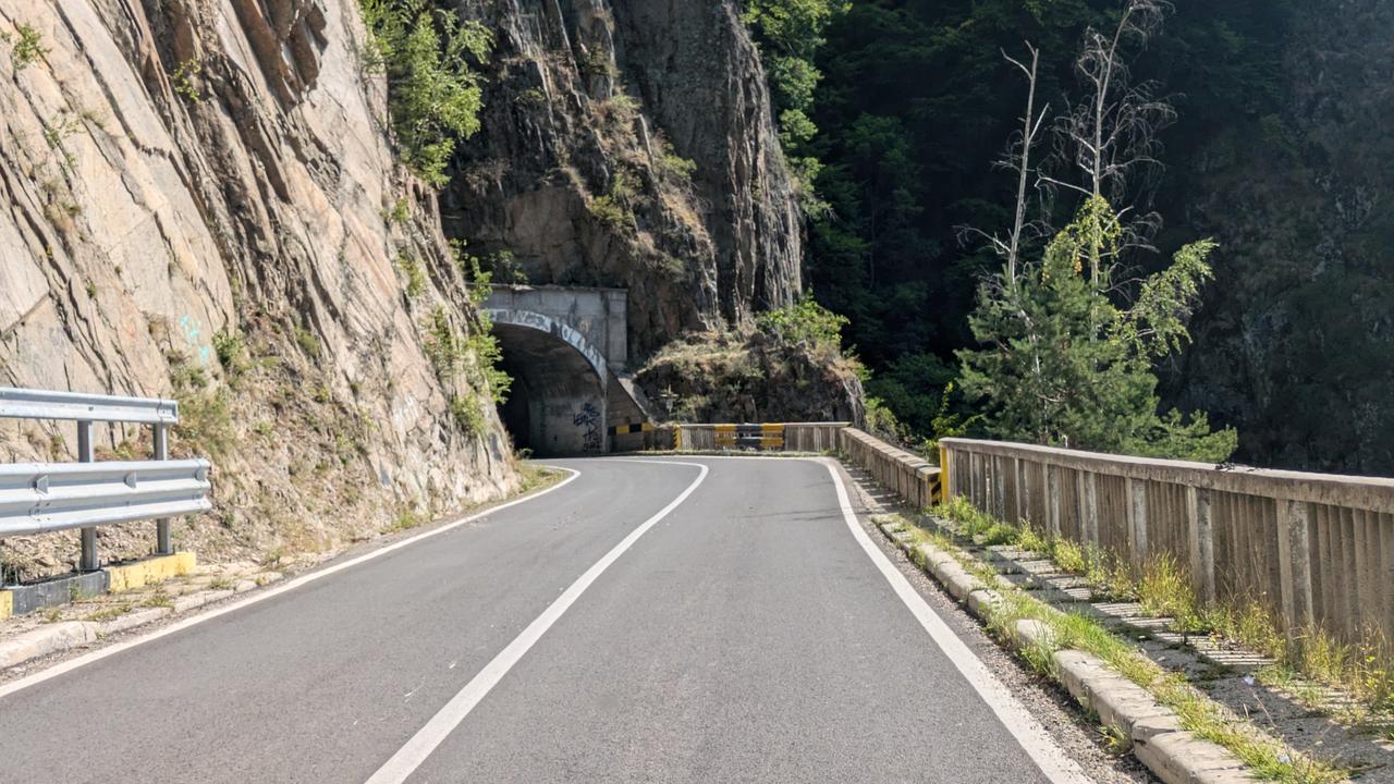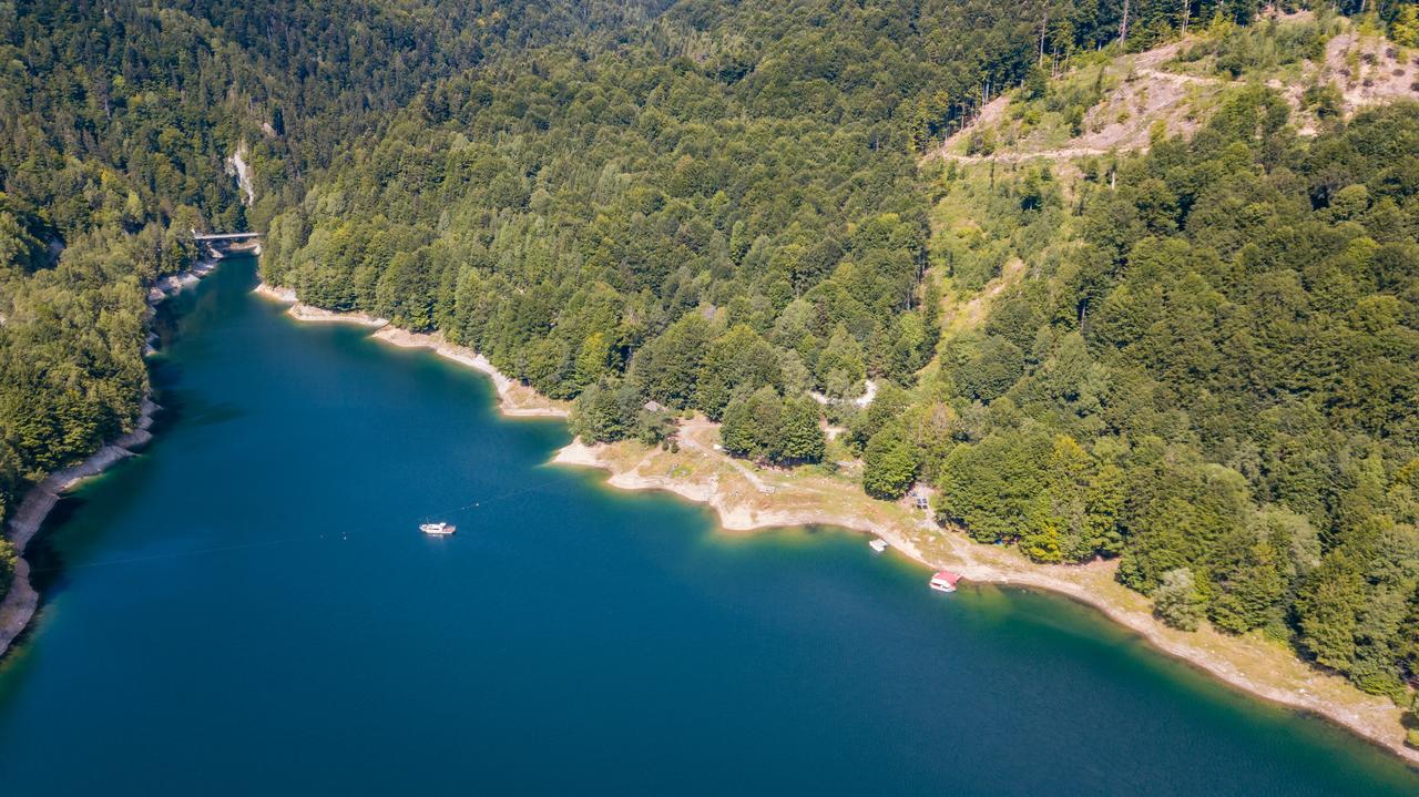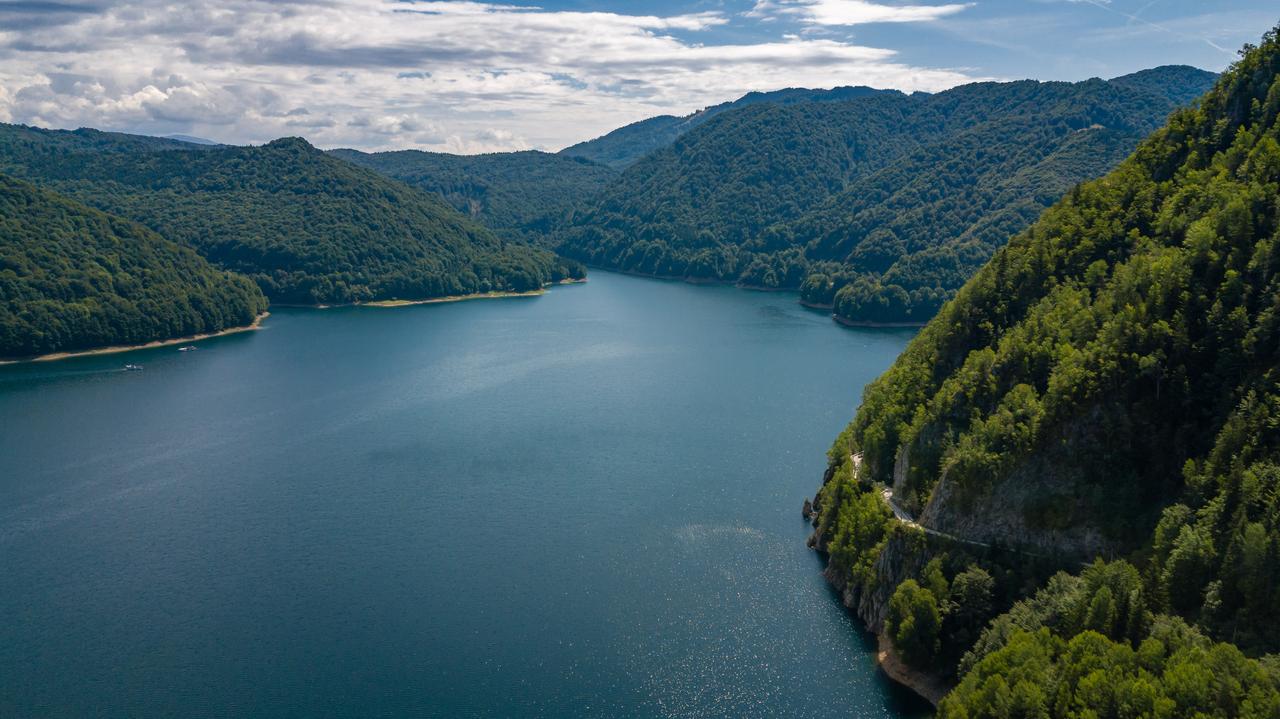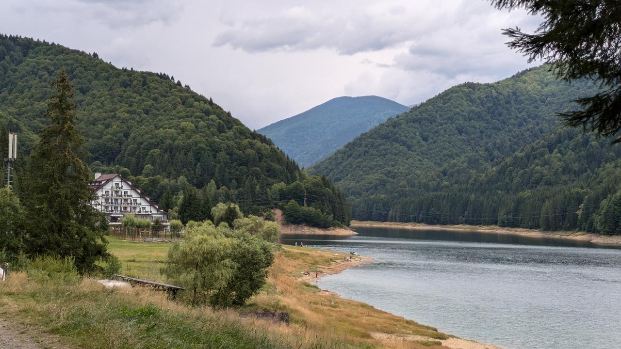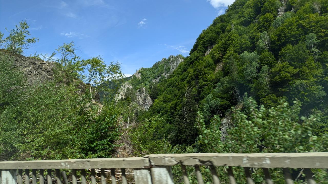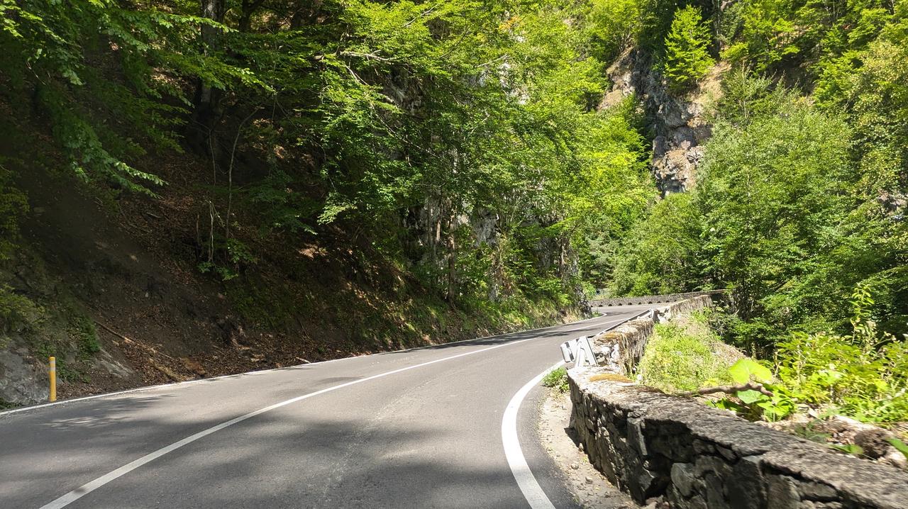 Ich weiss gar nicht, wie ich auf den Trichter gekommen bin, dass wir heute die Transfăgărășan in Asphaltform fahren 🧐 Wir wollten an dem Staudamm nach links statt nach rechts fahren, das wusste ich. Dort ist ein Tunnel und es ist erlaubt durchzufahren. Irgendwie hab ich erwartet, dass das eine asphaltierte Strasse ist. Dem war nicht so 😀 Ein Tag Offroad-Pause muss ja auch wirklich reichen 😉 Aber es war halb so wild, während ich genüsslich auf und ab hüpfend ein paar Kekse geknabbert habe und Marco seinen diversen Apps kontrollierte, schlängelten wir uns an der Kante des wirklich grossen Stausees entlang. (Ist auch relativ, der an der 66A ist deutlich größer 😉 ) Wir waren auf festem Waldboden mit wenig Geröll unterwegs, ein bisschen nach links und rechts geschüttelt – das wars schon. Ab und zu ist uns ein anderes Fahrzeug entgegen gekommen oder hat uns überholt. Alles in allem war der Weg linksseitig sehr schön ruhig. Vom gegenüberliegenden Ufer konnten wir einige Male Motorräder hören. Zum Ende hin gibt es ein paar Campingplätze und kleinere Hotels. Auch wenn die „Straße“ für unseren Offroader kein Problem darstellte, fragen wir uns doch wie normale Fahrzeuge das schaffen sollen – doch es standen dort einige davon. Okay, muss wohl gehen – wir würden das mit unseren Daily-Fahrzeugen nicht machen 🙈