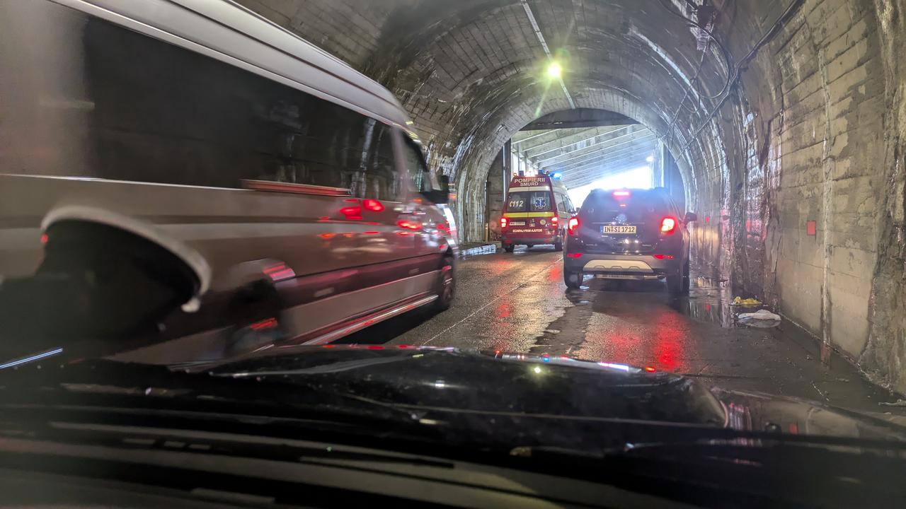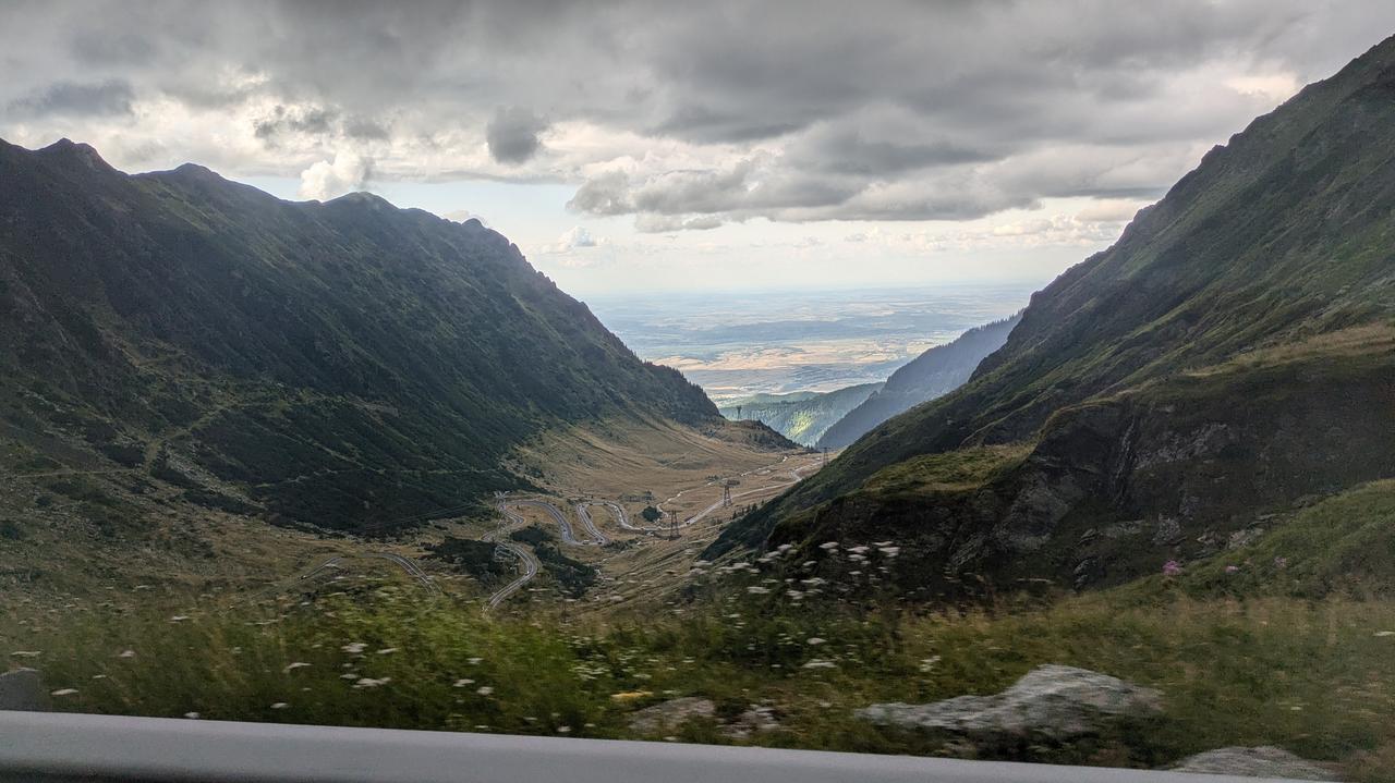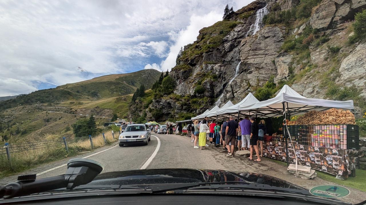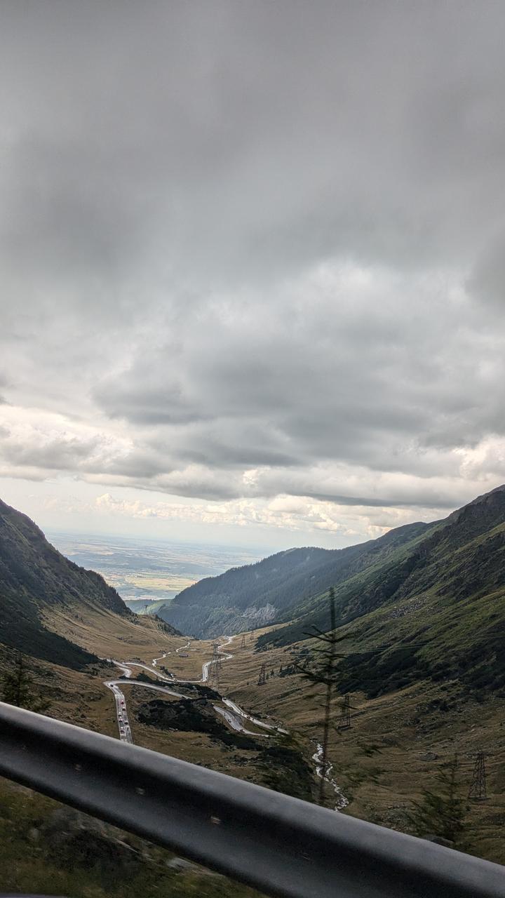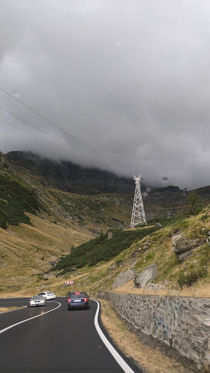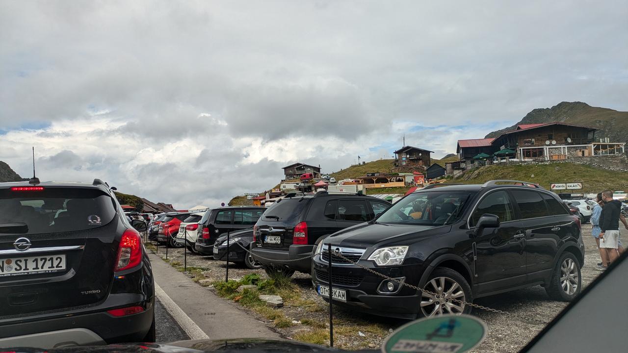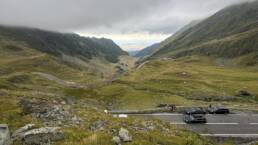 Als für uns die „normale“ Transfăgărășan weiterging, fing es doch tatsächlich an zu regnen :-O wir hatten doch alle Wetter-Apps gecheckt – der Regen sollte HIER nicht sein, also noch nicht. Naja, was soll, das ist ja kein Grund zu verzagen. Und wieder, so schlimm wars gar nicht, es klarte schon bald wieder auf (juhu). Wenn wir gestern schon gedacht haben, die Transalpina wäre voll, wurde es heute nochmal getoppt. An wirklich jedem Spot oder Parkplatz standen etliche Fahrzeuge. Die Einheimischen wissen das sehr gut zu nutzen und stellen genau dort ihr Stände mit allerlei regionalen Essen, Snacks und Andenken auf. Dadurch wird es überall noch voller. Wir standen sogar im Stau! Im Tunnel direkt vor dem Scheitelpunkt, von wo die Seilbahn ins Tal gondelt und man den perfekten Panoramablick auf die faszinierenden Schleifen der Straße hat.