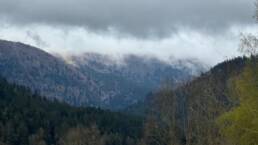 Die Böen haben mich ganz schön durchgeschüttelt, besonders in den höheren Lagen – mit vollen Koffern, nasser Kleidung und Seitenwind wird aus entspanntem Touren schnell konzentriertes Arbeiten. Selbst am Abend in Delle pfiff es noch ums Visier.