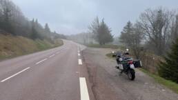 Der Grenzübertritt nach Frankreich war keine Überraschung – aber der Wechsel in Landschaft, Wetter und Fahrverhalten war spürbar. Der Regen blieb, und dazu kam: ein kräftiger Wind, der sich durch weite Teile des Tages zog. Morgens schon unangenehm, auf der Route des Crêtes dann stürmisch.