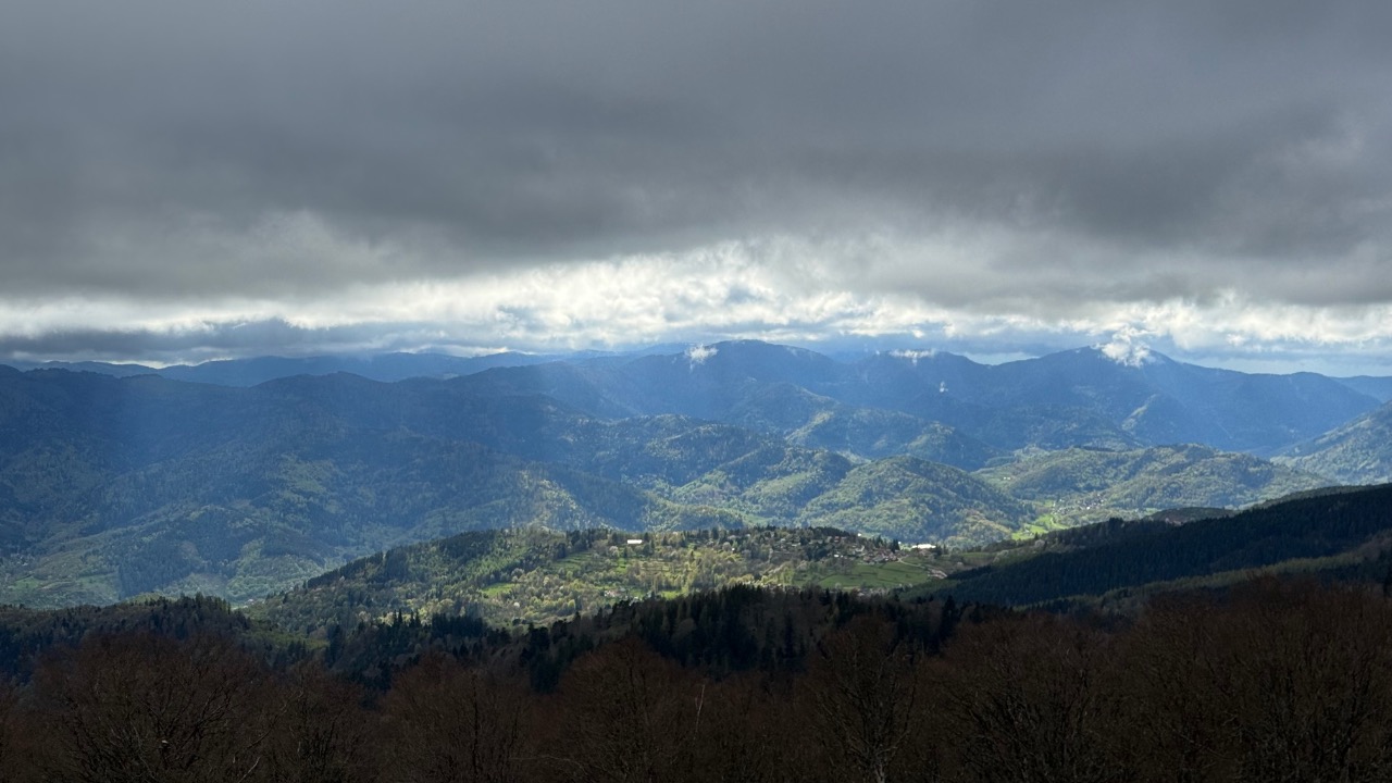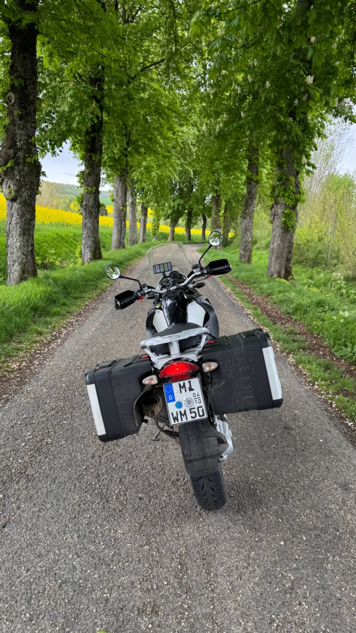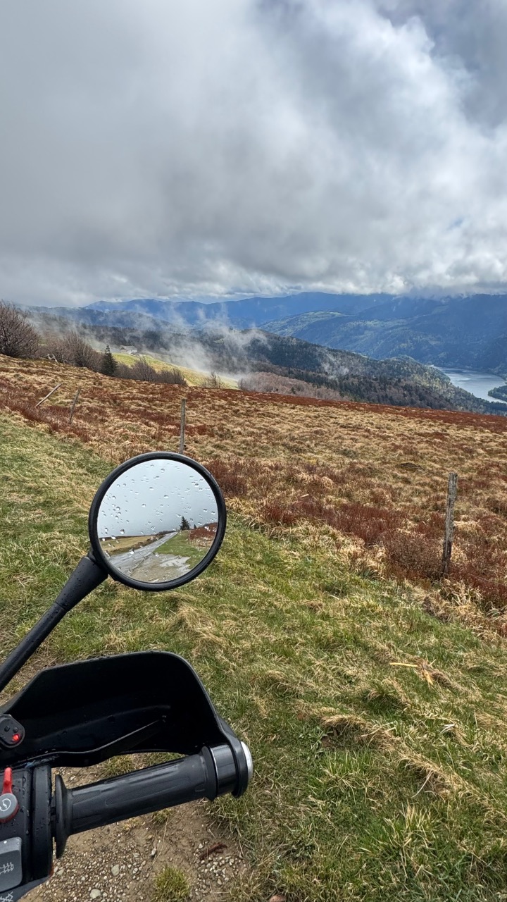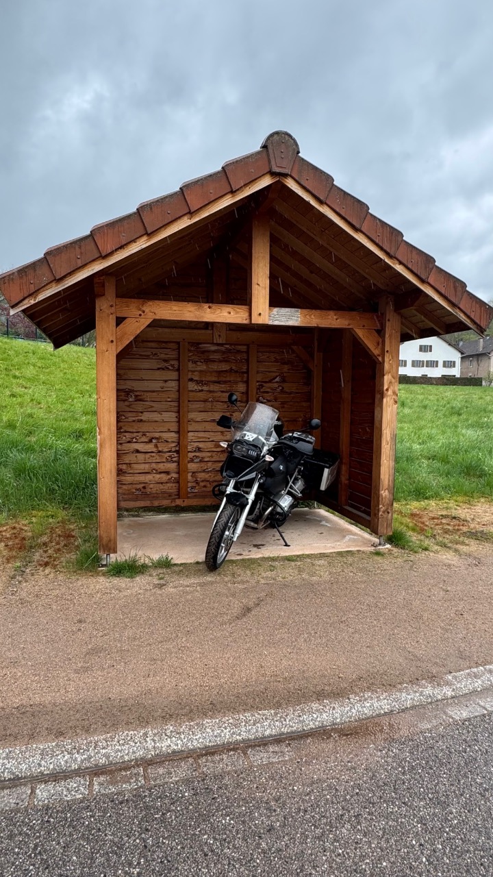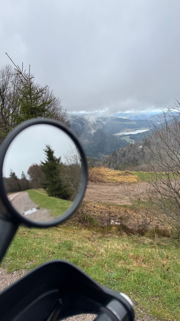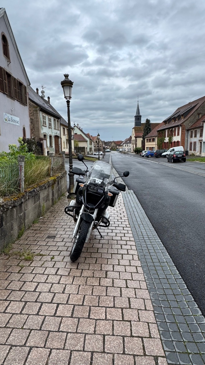 Die Böen haben mich ganz schön durchgeschüttelt, besonders in den höheren Lagen – mit vollen Koffern, nasser Kleidung und Seitenwind wird aus entspanntem Touren schnell konzentriertes Arbeiten. Selbst am Abend in Delle pfiff es noch ums Visier.