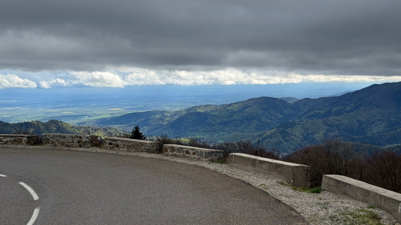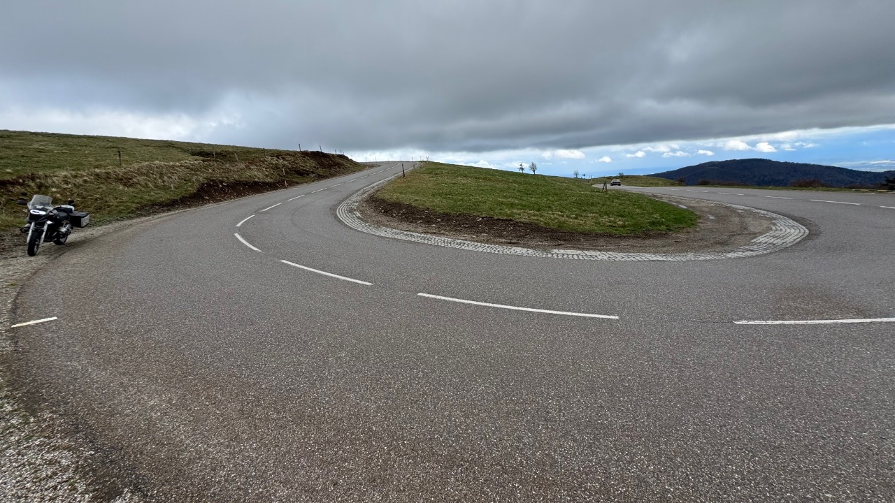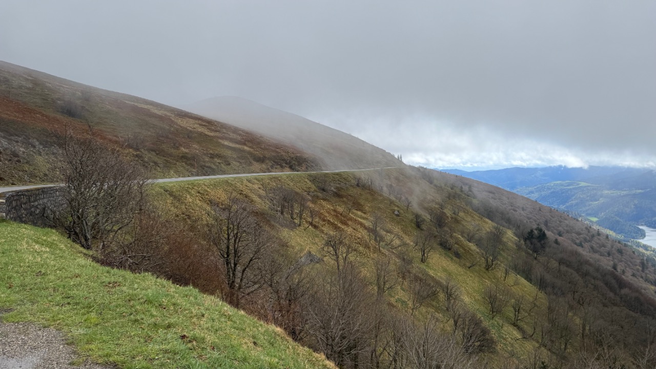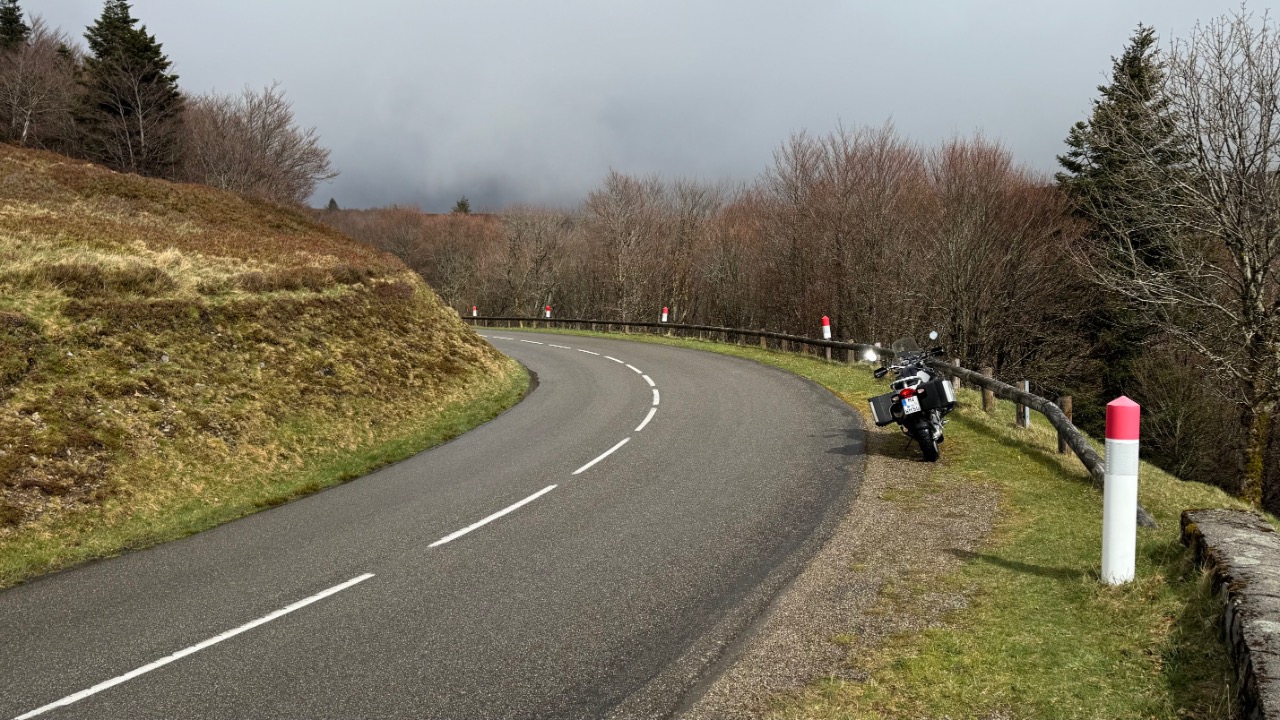 Der Grenzübertritt nach Frankreich war keine Überraschung – aber der Wechsel in Landschaft, Wetter und Fahrverhalten war spürbar. Der Regen blieb, und dazu kam: ein kräftiger Wind, der sich durch weite Teile des Tages zog. Morgens schon unangenehm, auf der Route des Crêtes dann stürmisch.