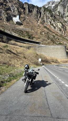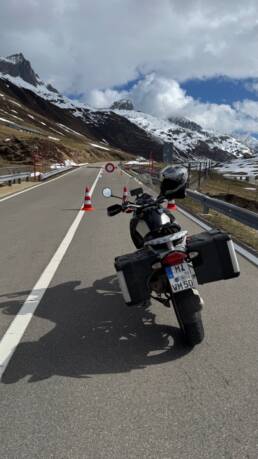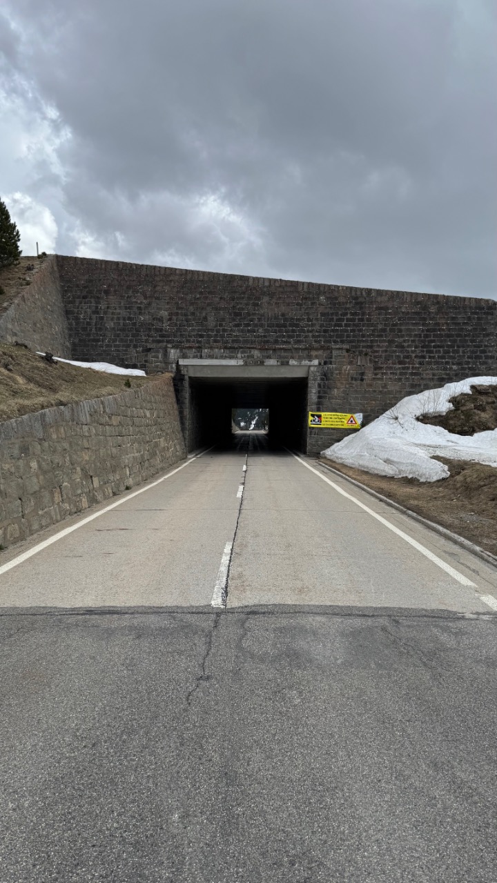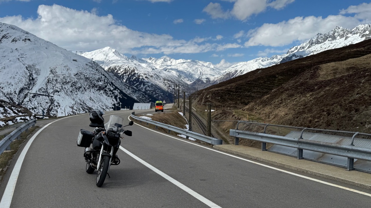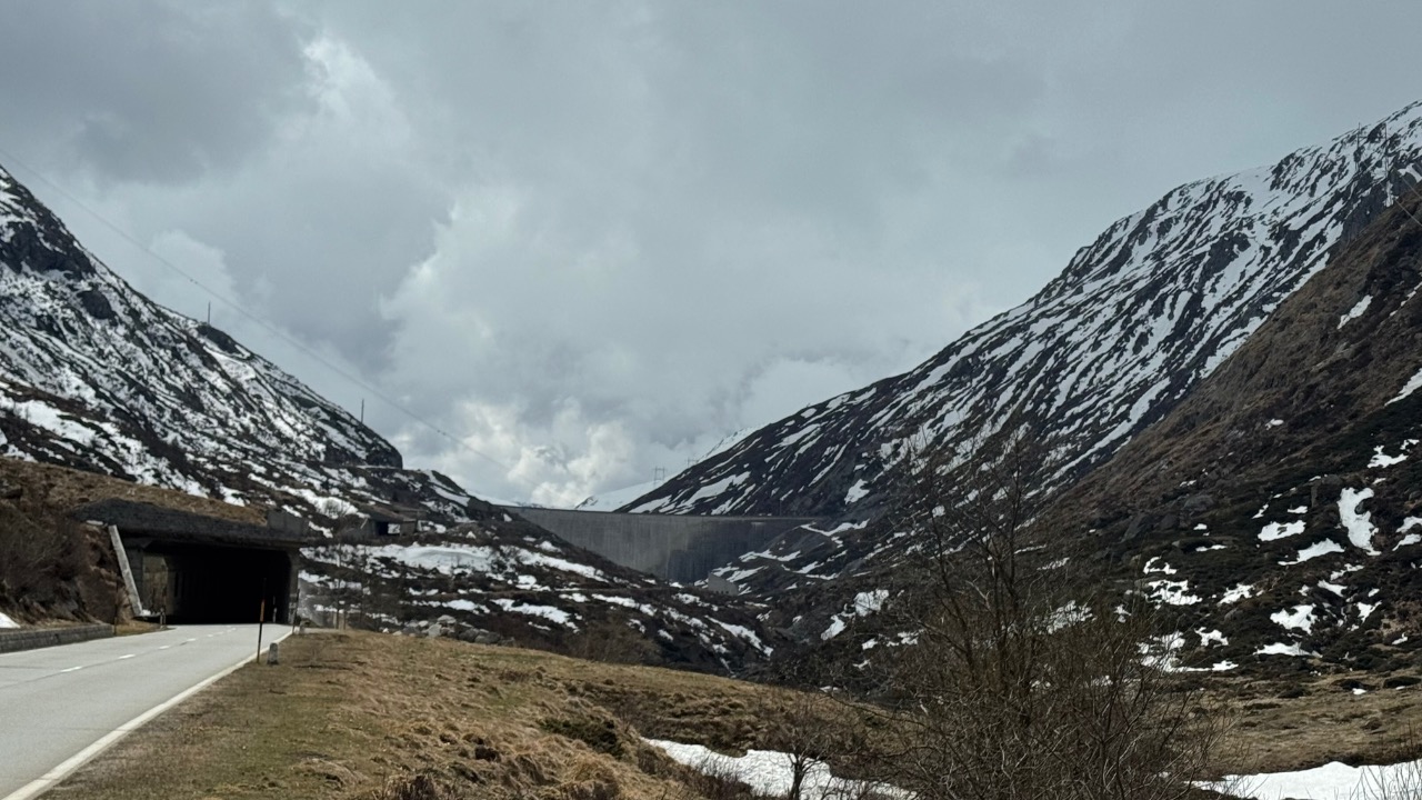 Gestärkt ging’s weiter – zumindest kurz. Denn bei Nätschen war Schluss. Die Straße war noch gesperrt, ein freundlicher Anwohner klärte mich auf: „Der Pass öffnet erst am Freitag.“ Also blieb nur der Weg durch den Gotthardtunnel – und der hatte es in sich: Sauna-Feeling auf zwei Rädern.