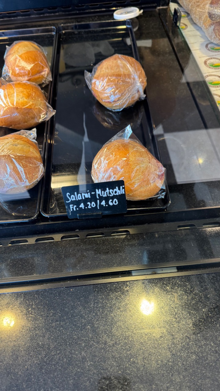 Meine Unterkunft? Confiserie, Restaurant und B&B in einem. Was gibt’s Besseres als eine echte schweizerische Confiserie nach so einem Tag? Zur Begrüßung gab’s eine handgemachte Praline – und ganz ehrlich: das hebt die Stimmung sofort auf 100. Dazu ein Zimmer, in dem die Taschen wieder Platz finden. Das WLAN? Stark. Die Pizza bei „La Mama“? Goldrichtig. Genuss in jeder Form.