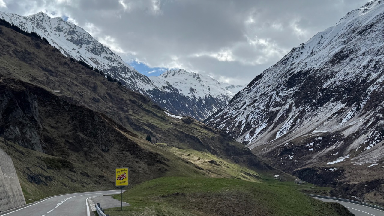 Der Tag begann in Meiringen mit einem kleinen, aber starken Kaffee aus dem Automaten – 2 von 5 Tassen, immerhin koffeinhaltig. Doch der Weg nach Süden war klar: über Andermatt sollte es weiter Richtung Bellinzona gehen – so der Plan.