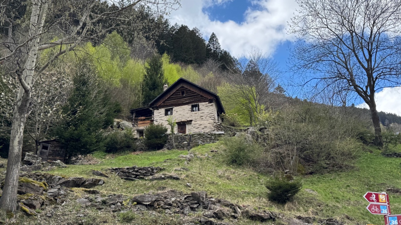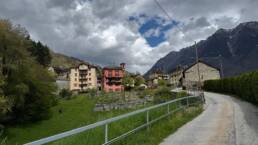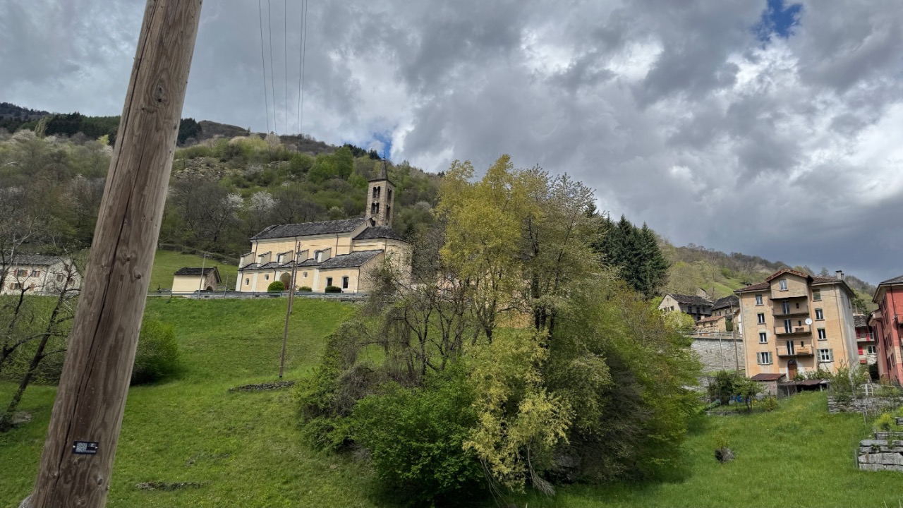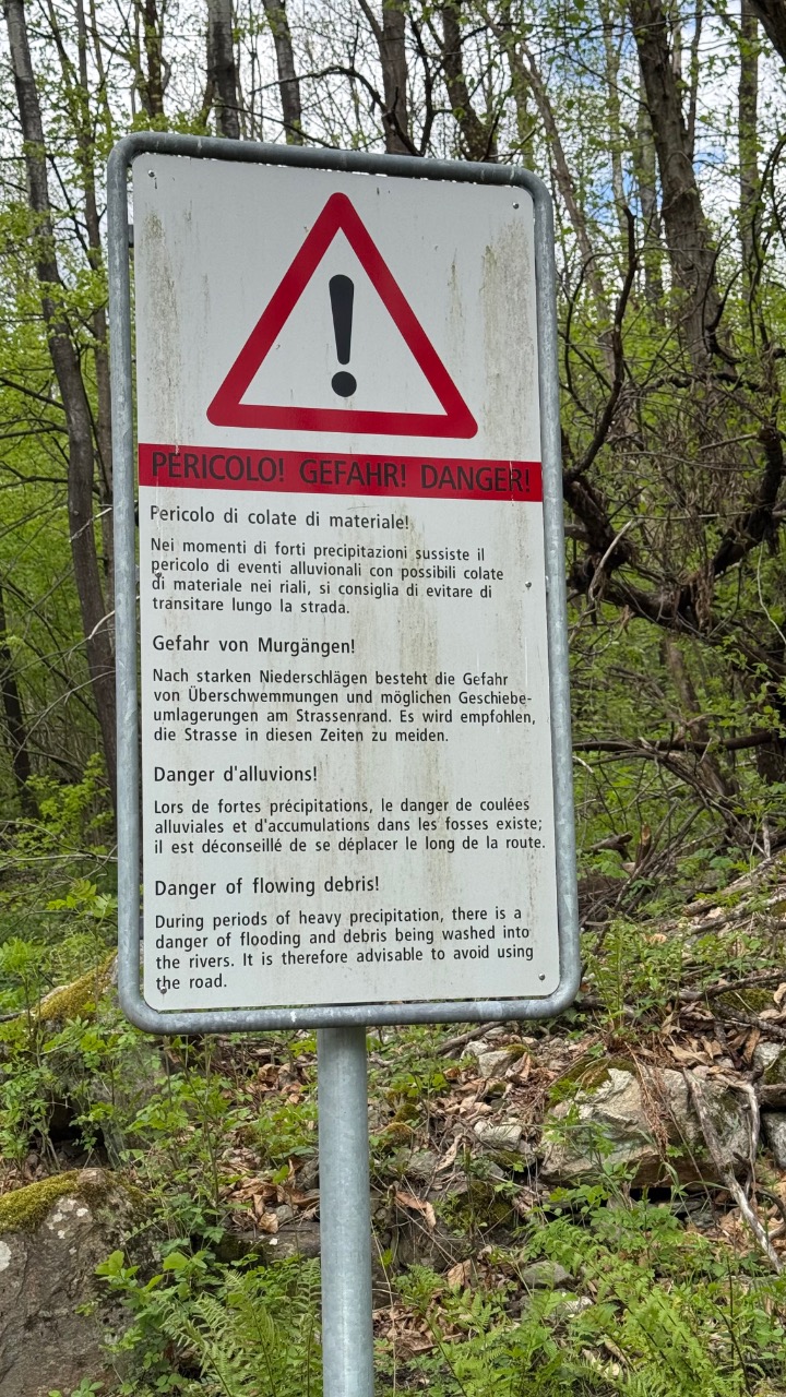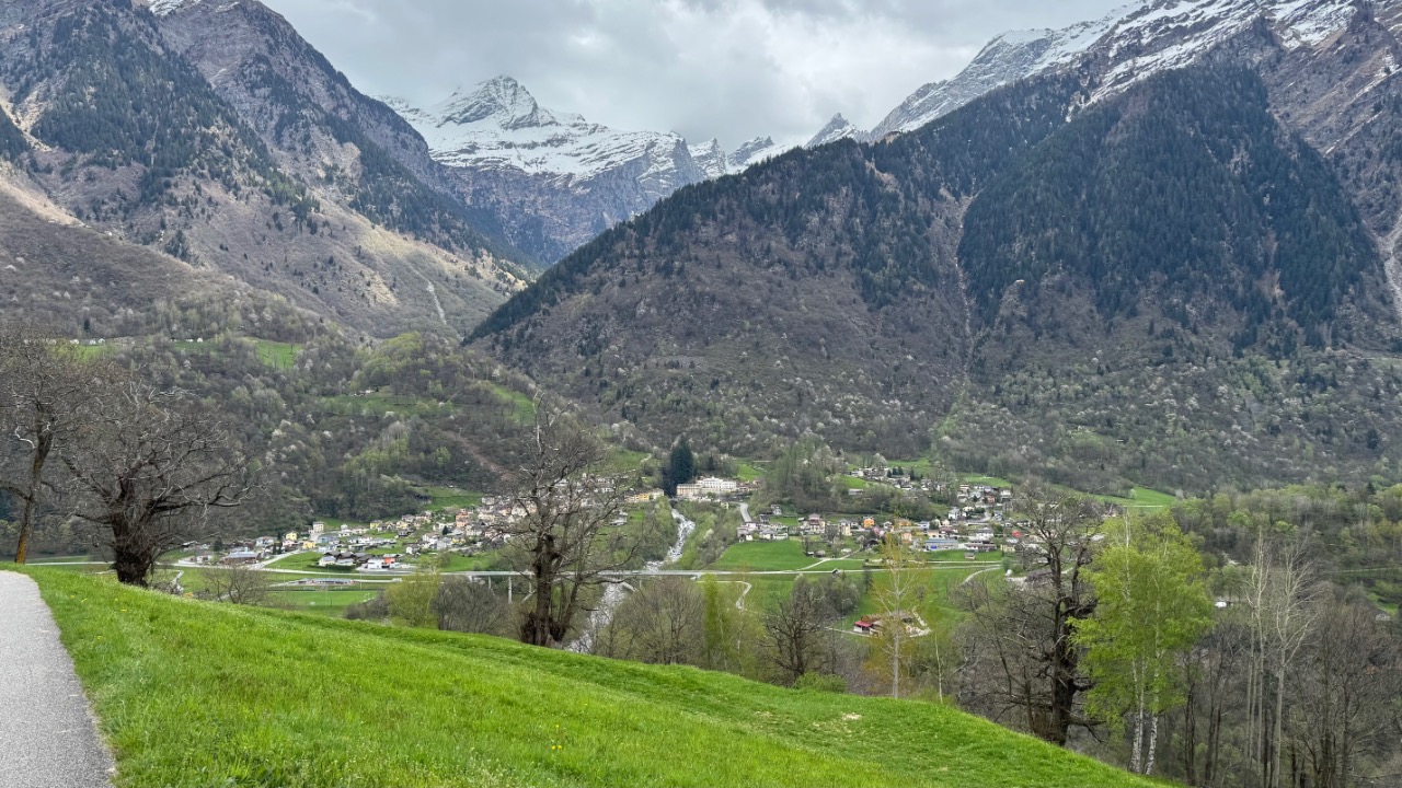 In der Region um Ponto Valentino wurde es dann ernst. Die Strecke war extrem schmal und kurvig, oft gerade mal breit genug für ein Fahrzeug. Ich fuhr größtenteils im ersten Gang, denn hinter jeder Biegung konnte plötzlich Gegenverkehr auftauchen. Die Straße wand sich durch die Hänge, verlassen wirkende Häuser tauchten am Rand auf, tief unten lagen Torre und Dangio im Tal. Ein Wanderer, ein paar Autos – ansonsten war ich auf mich gestellt. Ein intensiver Abschnitt – langsam, fordernd, aber faszinierend.