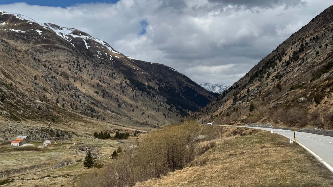 Der Lukmanierpass selbst war das landschaftliche Finale des Tages: weite Kurven, dramatische Kulisse, kaum Verkehr. Die Temperatur fiel auf etwa 5 Grad, in der Ferne zog ein Schauer durch die Berge – ich selbst blieb trocken. Die Sonne kämpfte sich zwischendurch durch die Wolken – ein großartiger Abschluss für einen Tag, der ganz anders verlief als geplant.