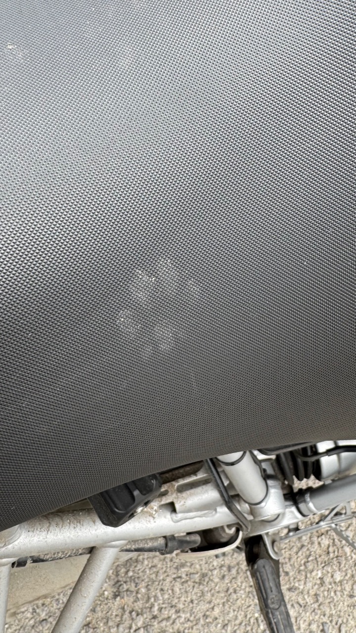 Bevor ich überhaupt aufs Motorrad steigen konnte, hinterließ offenbar ein heimischer Vierbeiner seine ganz eigene Liebeserklärung: Mehrere kleine Pfotenabdrücke auf der Sitzbank meiner treuen Lady – ein tierischer Gruß zum Start in den Tag.