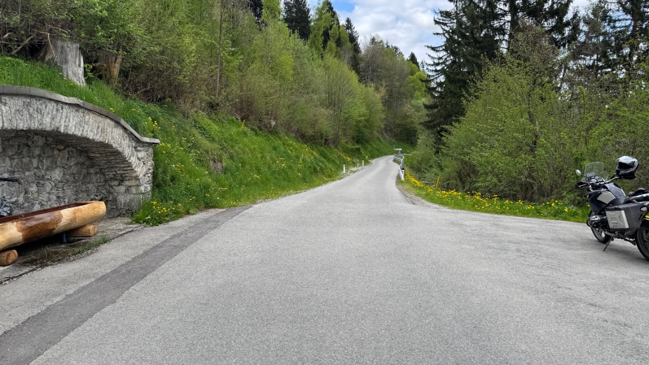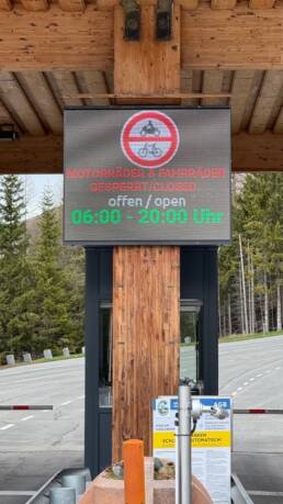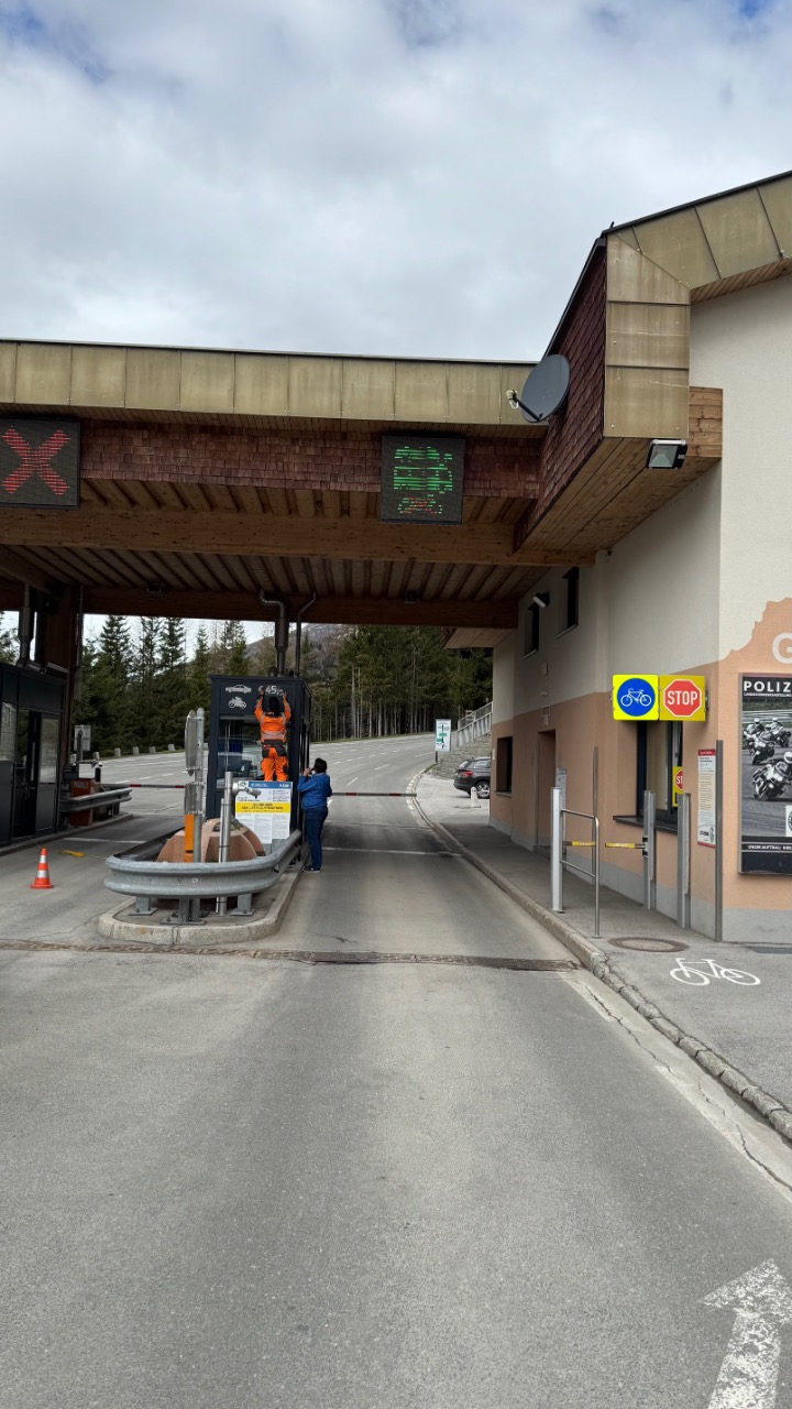 Ich hielt an der Mautstation und sprach mit den Angestellten – in der Hoffnung, man würde mich doch durchlassen. Aber: Fehlanzeige. Ab heute dürfen Autos mit Sommerreifen hoch – Motorräder nicht. Echt jetzt? Die dürfen, ich nicht? Na gut. Also Plan B.