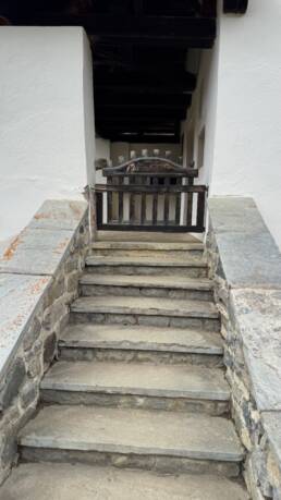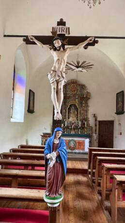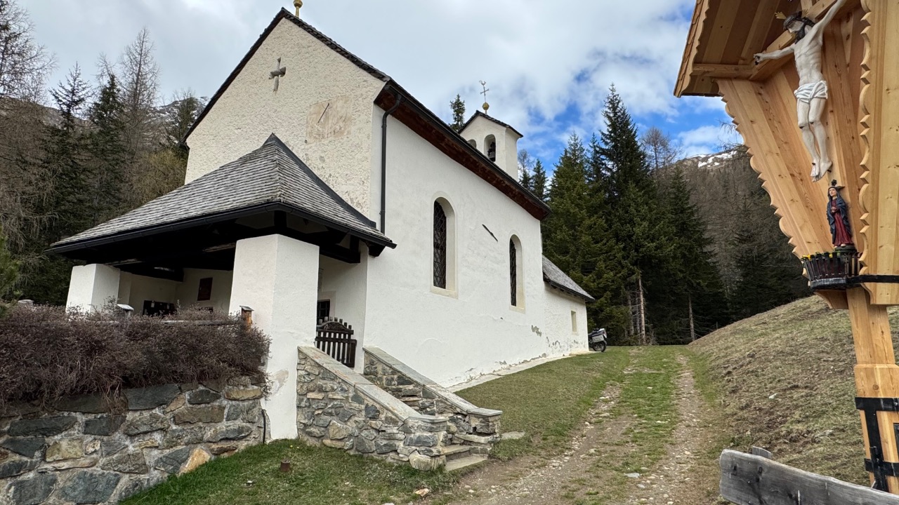 Erst ein Stück weiter entdeckte ich einen schmalen Pfad, der steil, felsig und mit losem Schotter gespickt war. Der hatte’s in sich. Sowohl runter zur Kapelle als auch später wieder rauf zur Straße war volle Konzentration gefragt.