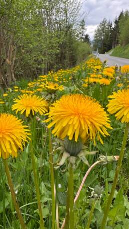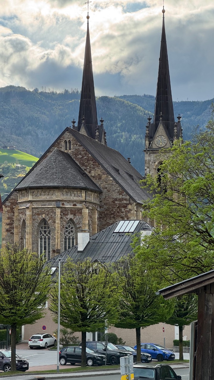 Wenig später Pause in Gmünd in Kärnten: 12 °C, kein Wind, Löwenzahn überall auf den Wiesen. Die Berge flacher, kein Schnee – und irgendwie fühlte sich alles wärmer an, als es war. Ein kleines Eichhörnchen flitzte über die Straße. Frühling in Reinform. Erstmal schnell stärken: Currywurst. Besser als gestern, aber da geht noch was.