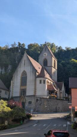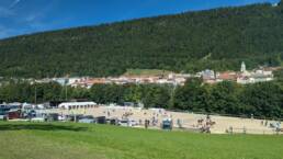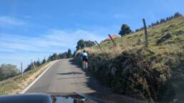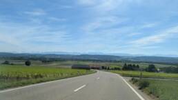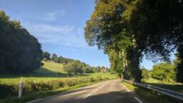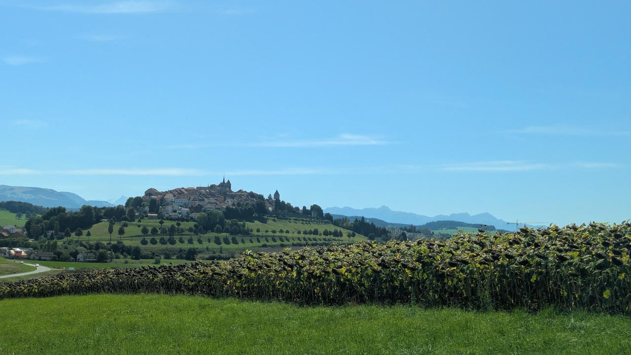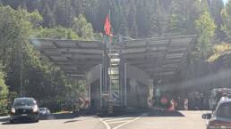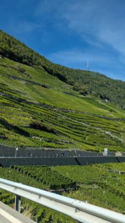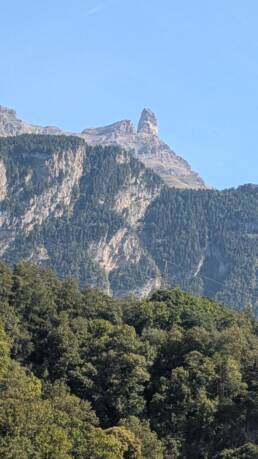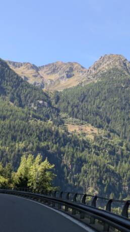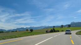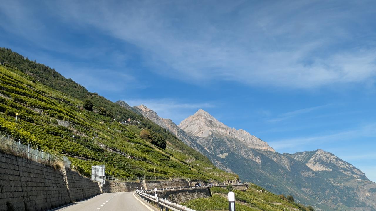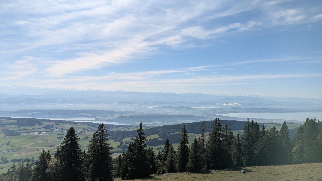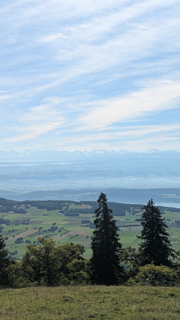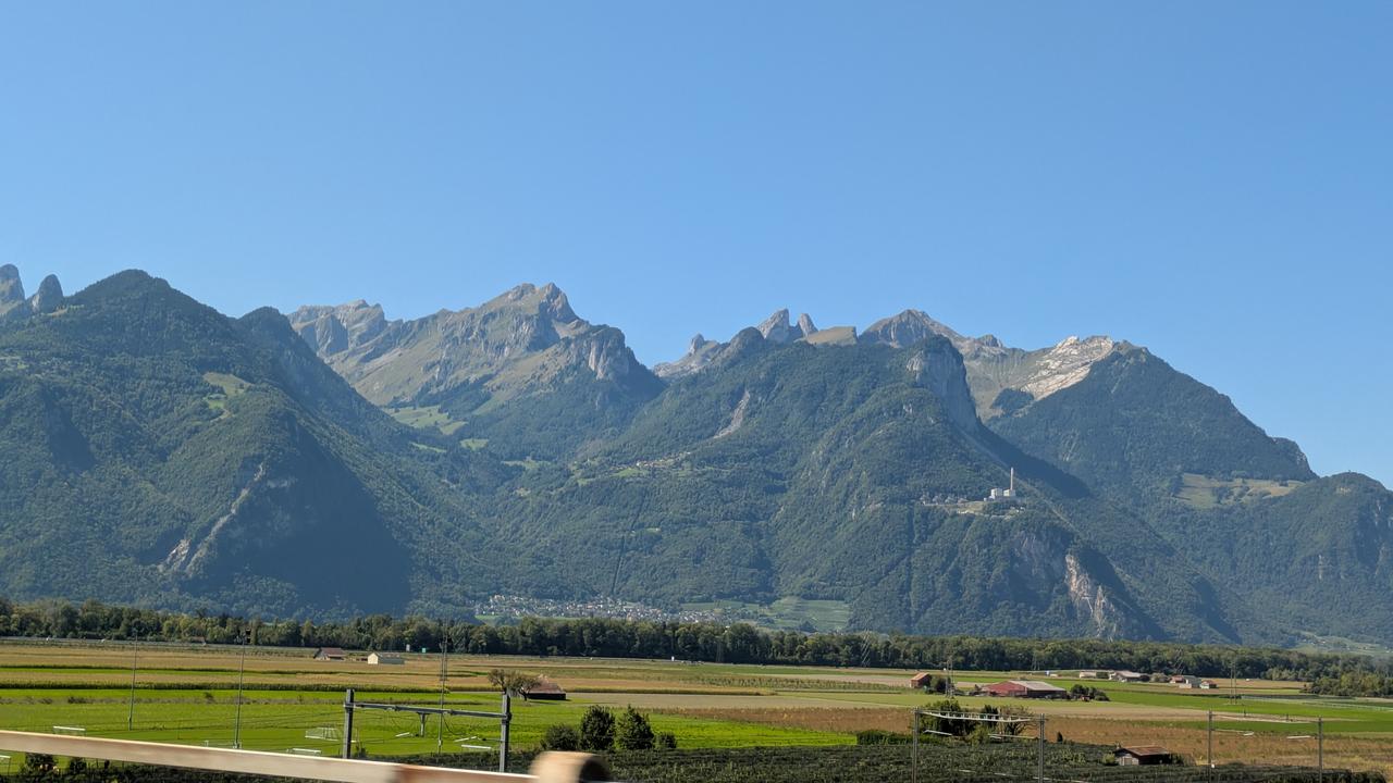 Pannen in Frankreich gab es schon genug (siehe Alpentour 2025) – also Roaming aus und ab in die Schweiz. Der Grenzübergang war recht unspektakulär – dafür wurde es landschaftlich immer schöner: erst sanfte Hügel, dann zunehmend steile Anstiege. Am Col du Chasseral in der Schweiz erreichten wir mit 1.526 Metern unseren höchsten Punkt des Tages. Oben thront eine gewaltige Sendestation mit Antennen, die Regine augenzwinkernd als „Raketenbasis“ bezeichnete – in Anlehnung an die Transalpina, wo sie eine ähnliche Station so getauft hat. Raketen waren zwar keine zu sehen, aber die Aussicht auf die Alpen war grandios!
