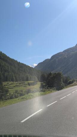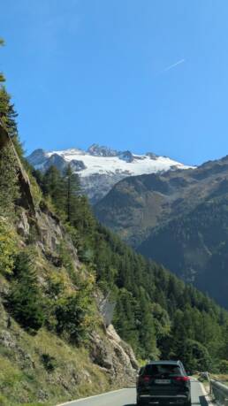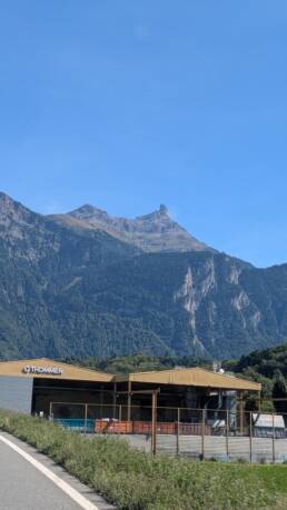 Später führte uns der Weg an einem großen See vorbei – mit einer Stadt am Ufer, die fast schon italienisch wirkte: Évian-les-Bains. Von hier aus war es nicht mehr weit bis zum Mont-Blanc-Massiv. Die Grenze zurück nach Frankreich passierten wir völlig problemlos, sogar mit einem Lächeln von den Grenzpolizisten.