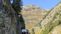 Bald war die Grenze zur Schweiz erreicht. Am Simplonpass tauchten wir in die vertraute Alpenwelt ein: Galerie-Tunnel, Baustellen, weiße Gipfel links und rechts.