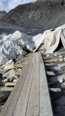 Wir entschieden uns, zunächst den Gletscher zu besuchen. Der Rhonegletscher-Lehrpfad erzählt eindrücklich seine Geschichte: Während der letzten Eiszeit reichte er bis nach Lyon, heute zieht er sich Jahr für Jahr zurück. Besonders bedrückend waren die Tafeln, die zeigten, wie viel Eisfläche allein seit 1850 verloren gegangen ist – und wie er bis Ende des Jahrhunderts fast vollständig verschwinden könnte.