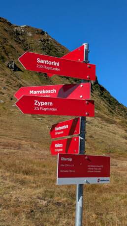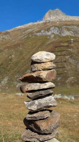 Von dort ging es direkt hinauf zum Oberalppass. Oben, am Oberalpsee, haben wir nicht nur die Aussicht genossen, sondern auch zwei spannende Dinge entdeckt: die kleine MS ALPSU, ein Symbol dafür, dass das Wasser von hier seinen langen Weg bis Basel und in die Nordsee nimmt. Und ein Schild zum Vier-Quellen-Weg, der die Ursprünge von Rhein, Reuss, Ticino und Rhône verbindet. Faszinierend, wie nah hier die Wasserscheiden liegen – und dass die Tropfen, die ein paar Meter auseinander entspringen, später in drei verschiedene Meere fließen.