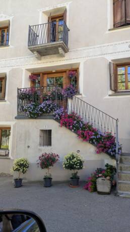 Dann ging es kurvig hinauf zum Albula Pass. Marco war diesen zwar noch nicht gefahren, aber die Umgebung kam ihm vertraut vor, und er schwelgte in Erinnerungen. Auf der Kammhöhe startet übrigens ein Mountainbike-Trail, der direkt ins Tal führt – oder rauf, je nachdem, wie verrückt man drauf ist.