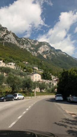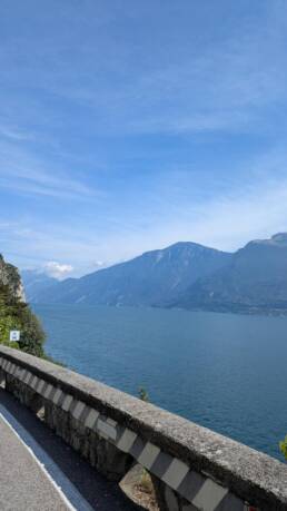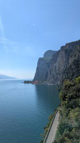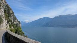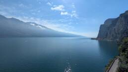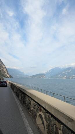 Unser Weg führte uns weiter Richtung Gardasee, genauer gesagt zur legendären Strada della Forra, die in Limone sul Garda beginnt. In Foren und Reiseberichten wird sie als eine der schönsten Straßen Italiens bezeichnet – wir waren gespannt. Nach knapp zwei Stunden erreichten wir den Gardasee. So schön er ist: wir waren entsetzt, wie voll es dort selbst in der Nebensaison war. Tunnel an Tunnel zieht sich die Hauptstraße am Fels entlang, mit Blicken auf Ausflugsdampfer, Kite-Surfer, Segelboote und Strandtourismus satt.