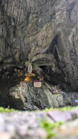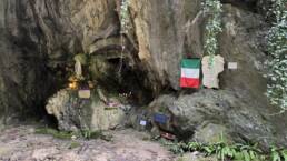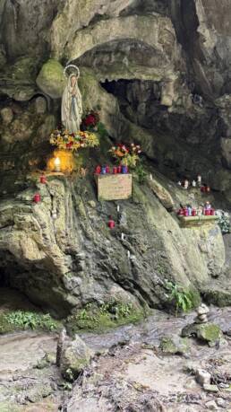 Unterwegs entdeckten wir eine Madonnenfigur mit Kerzen und eine Gedenktafel. Hier erfuhren wir, dass mehrere Arbeiter beim Bau der Straße ihr Leben verloren hatten – durch Felsstürze und Unglücke. Ihre Namen sind auf der Tafel verewigt. Ein stiller, bewegender Moment mitten in dieser beeindruckenden Landschaft.