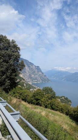 Danach war der schönste Teil der Strada leider vorbei. Über normale Serpentinen fuhren wir einmal um die Schlucht zurück nach Limone. Weiter ging’s durch lange Tunnel nach Riva del Garda, wo es ebenfalls sehr touristisch zuging. Uns war das zu viel, also hielten wir in einer Kehre und suchten die nächste Unterkunft.
