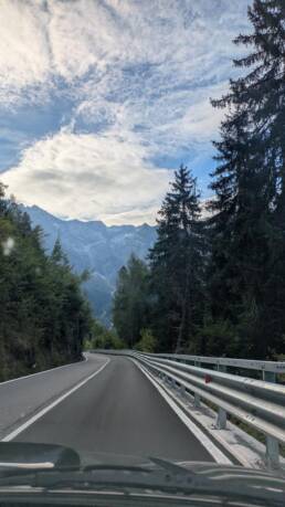 Je näher wir den Dolomiten kamen, desto mehr zog sich der Tag in die Länge. Stau und Baustellen raubten Nerven, die Müdigkeit meldete sich. Ein Straßenrand-Kaffee (2/5) rettete uns zumindest über das Nachmittagstief.