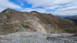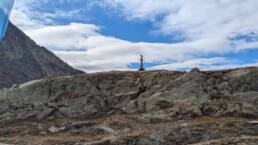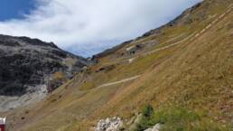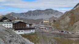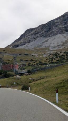 Öfter mal was Neues – obwohl wir auf dem Passo Tonale direkt neben einer Kirche unsere Unterkunft hatten, wurden wir nicht von Glocken, sondern schon wieder von Bauarbeiten geweckt. Das Apartmenthaus war brandneu, aber an vielen Ecken wurde noch gewerkelt – heute ausgerechnet an unseren Fenstern. Also Wecker ausstellen, durchs Bad huschen, Taschen packen und Vitaralino satteln. Auf geht’s: den Tonale hinunter, Tankstelle Fehlanzeige, und direkt wieder hinauf auf den Passo Gavia – alles ohne Kaffee! 😱
