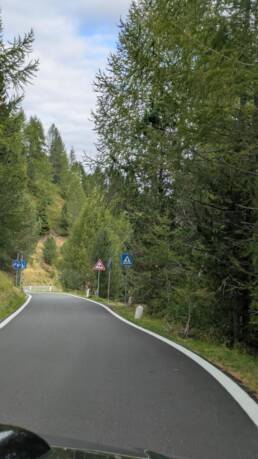 Wir streiften ein Hinweisschild zu den Drei Zinnen, konnten sie in den Ausläufern aber nicht ausmachen. Beeindruckend war trotzdem, wie sehr sich die Dolomiten vom Rest der Alpen unterscheiden: spitzer, zerfurchter, fast dramatisch im Erscheinungsbild.