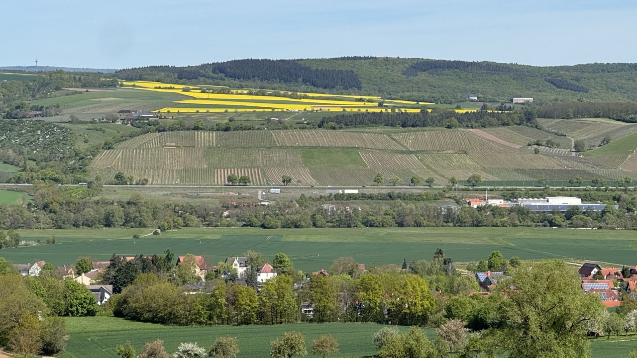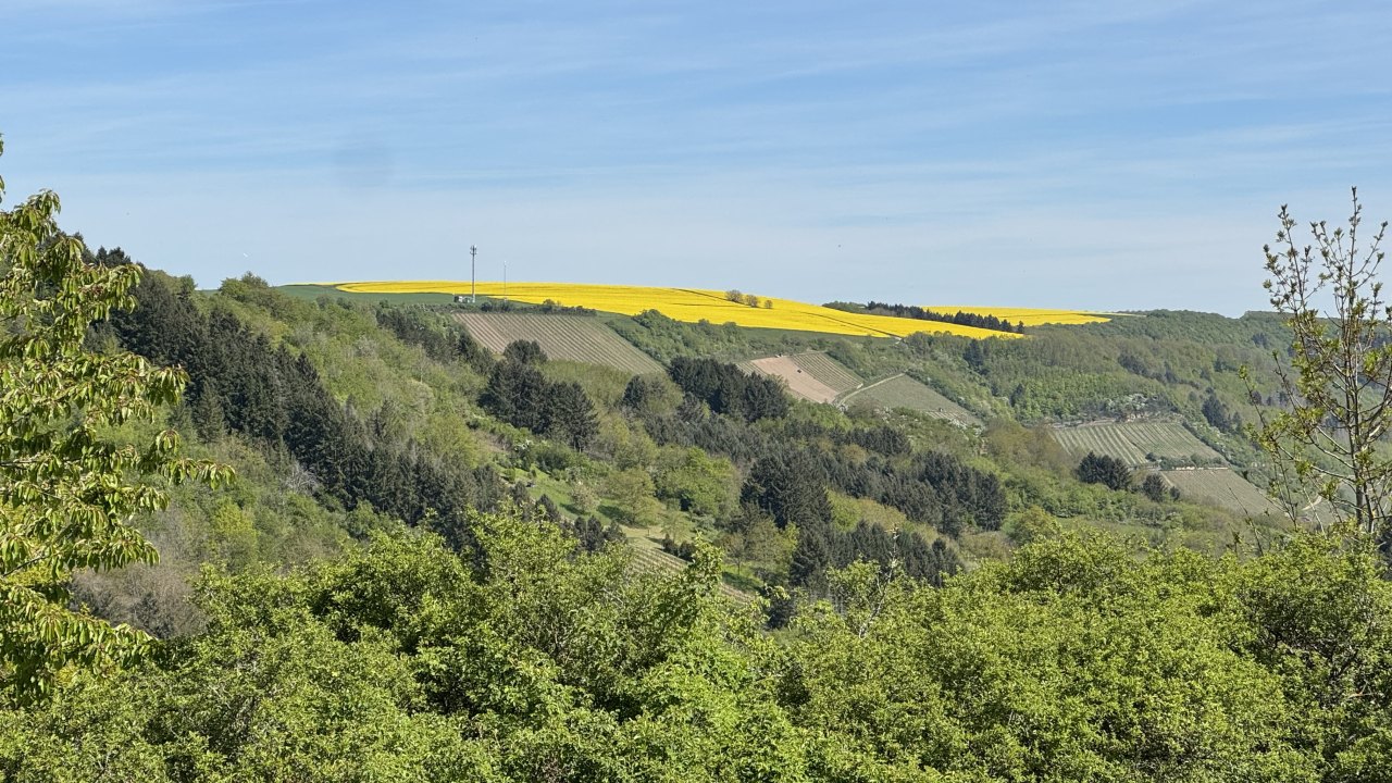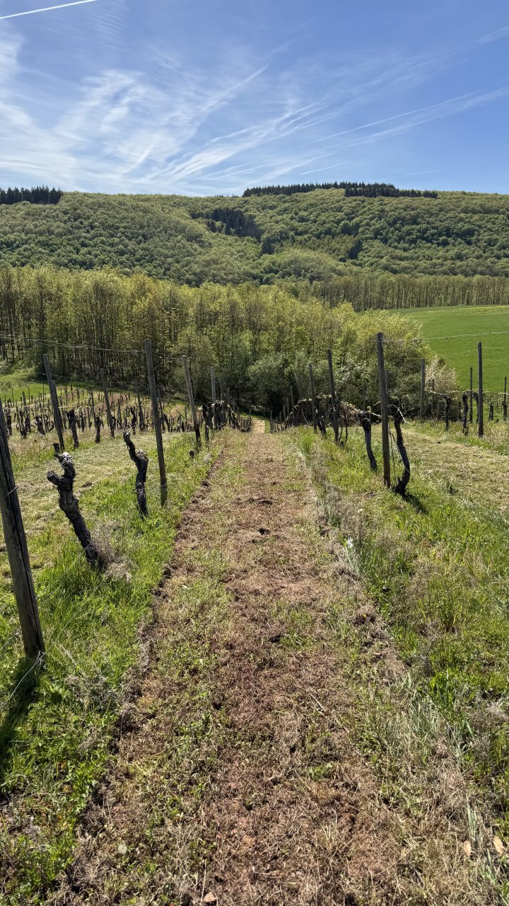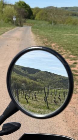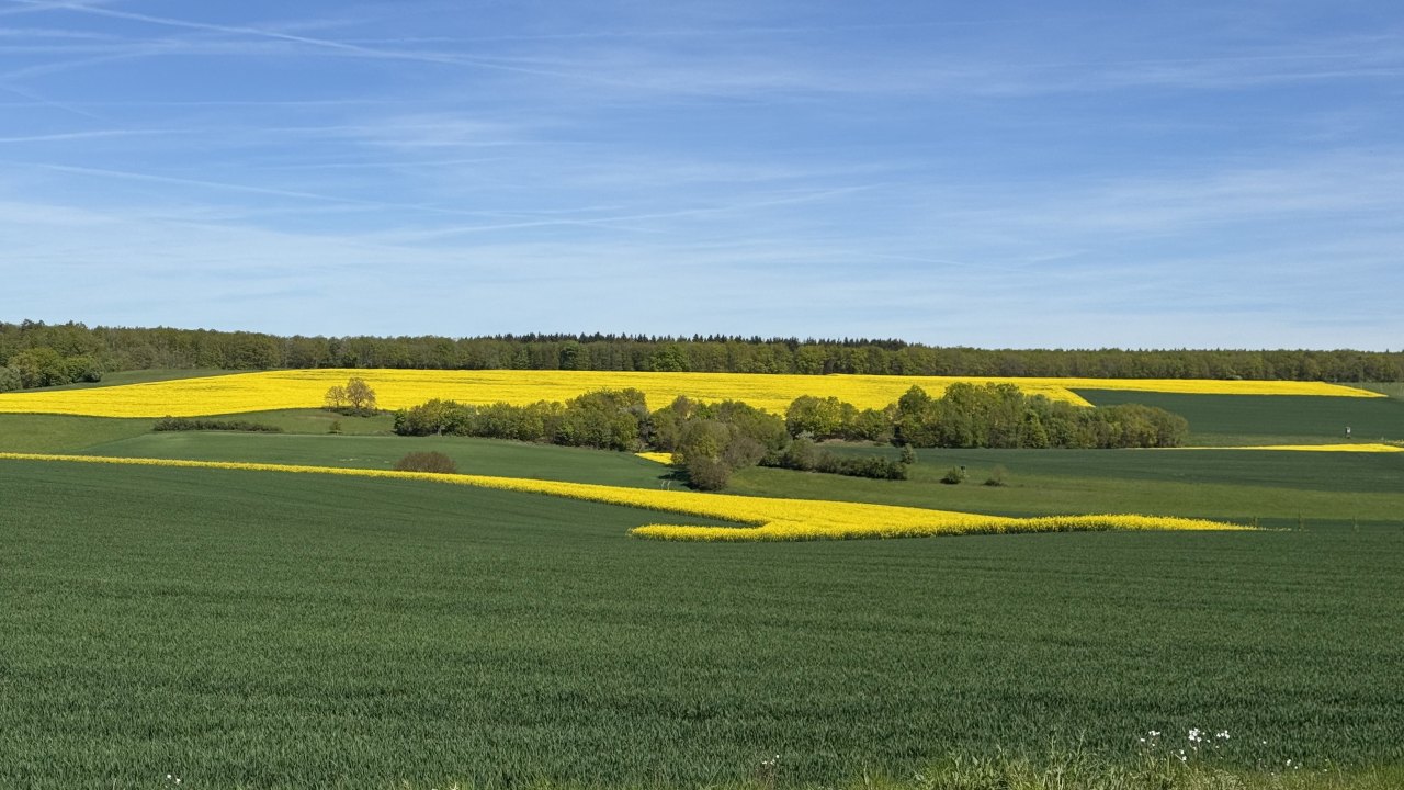 Auf dem Weg dorthin wurde die Landschaft wieder deutlich hügeliger, und ich kam erneut durch eine Weinregion. Weinberge links und rechts, dazu immer wieder Höfe und Läden, in denen Wein hergestellt, verkauft und verkostet wird. Ich bin sogar kurz in die Weinberge hineingefahren und habe dort ein paar Fotos gemacht. Gleichzeitig war wieder dieser typische Frühlingsmix allgegenwärtig: Rapsfelder, gelbe Landschaft, intensiver Geruch in der Luft. Es ist schon erstaunlich, wie sehr eine Gegend nicht nur anders aussieht, sondern plötzlich auch anders riecht.